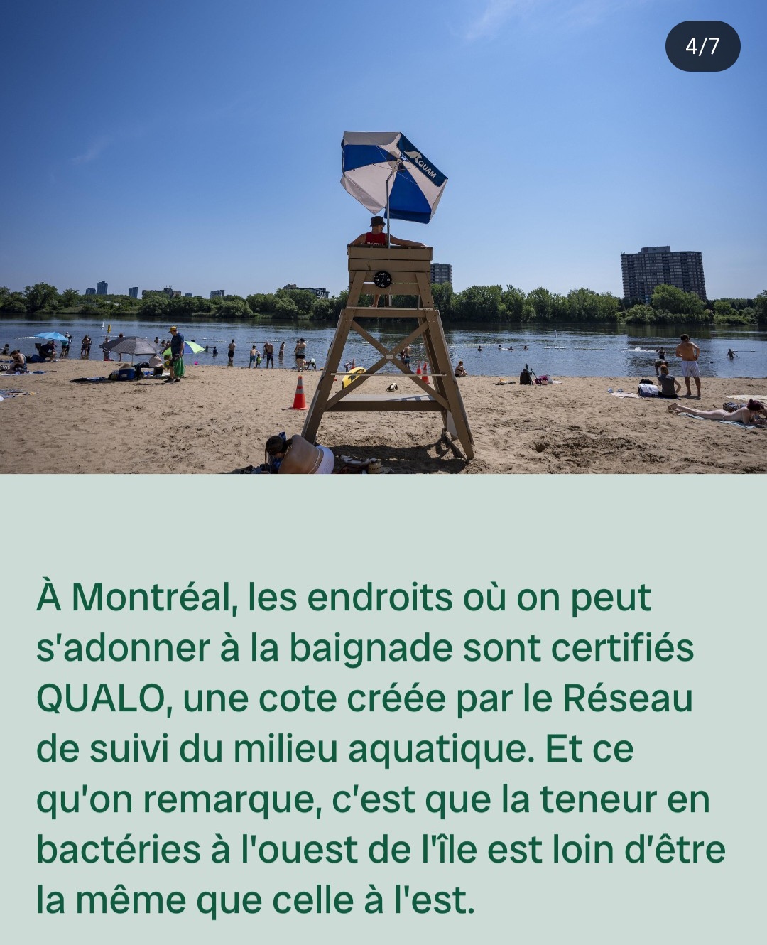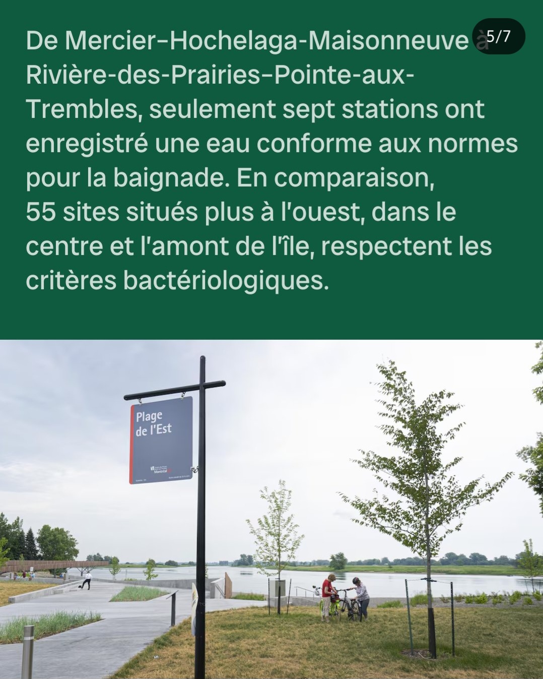 En ce qui concerne l’île de Montréal, les espaces publics se font rares sur les rives du fleuve Saint-Laurent. Nos espaces de travail étant situés dans Hochelaga-Maisonneuve, nous sommes particulièrement sensibles à ce manque de connexion à l’eau en raison des activités portuaires et de la privatisation liée au lotissement immobilier. D’autres secteurs riverains plus accessibles connaissent d’autres enjeux en ce qui a trait à la qualité de l’eau, ce qui complique la réappropriation de leurs rives, comme le montre le report du projet de zone de baignade à la promenade Bellerive 4.