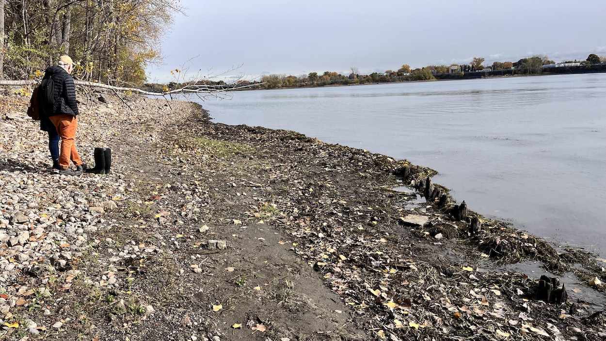 L’épave est visible en ce moment en raison du niveau d’eau historiquement bas du fleuve Saint-Laurent.