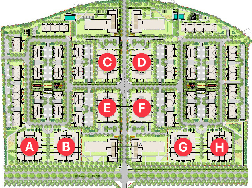 Important développement résidentiel qui totalisera 1 393 unités de différents types. Le quartier est situé à proximité de la station du Quartier du REM et du Grand Parc Urbain.