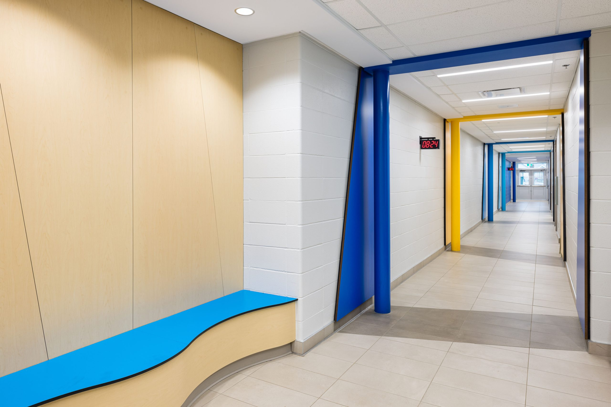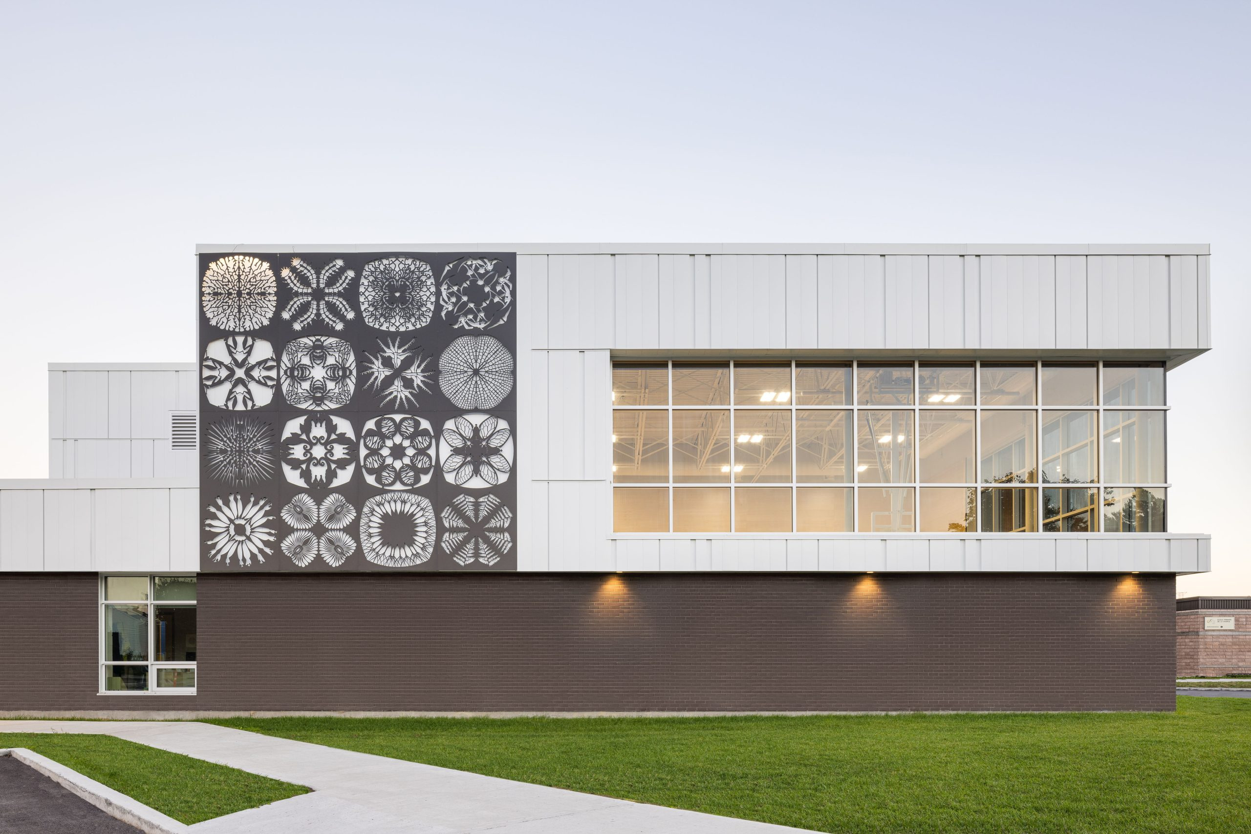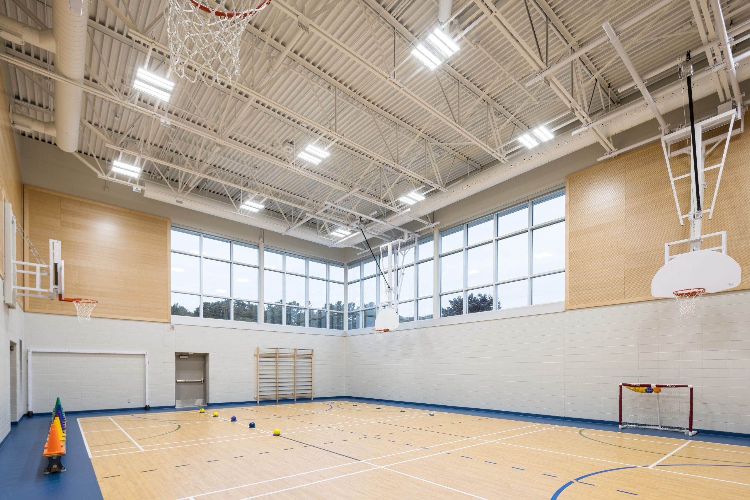 Agrandissement qui a consisté à l’ajout d’un nouveau gymnase avec les services connexes adjacents. Cet agrandissement comprend également l’aménagement d’un nouveau corridor de circulation le long du gymnase existant et l’ajout d’un (1) local polyvalent, d’une (1) classe ressource ainsi que l’aménagement de vestiaires et de salles de toilettes. Cet ajout a permis la création d’un environnement adapté pour les élèves.