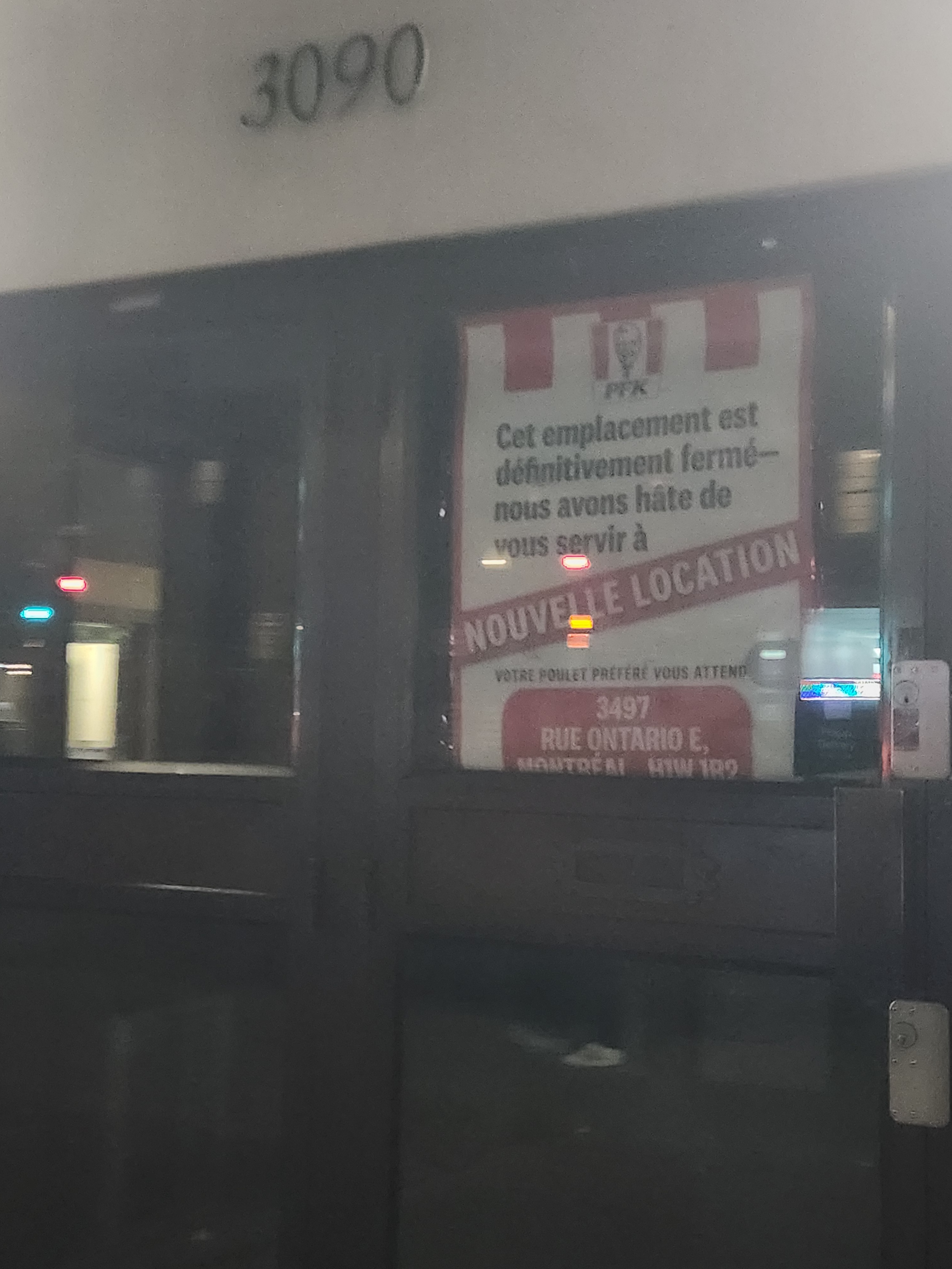 La fin d’une époque. Le PFK Préfontaine est définitivement fermé, et relocalisé sur la Promenade Ontario, près de la rue Aylwin. C’est leur nouvelle “location”
