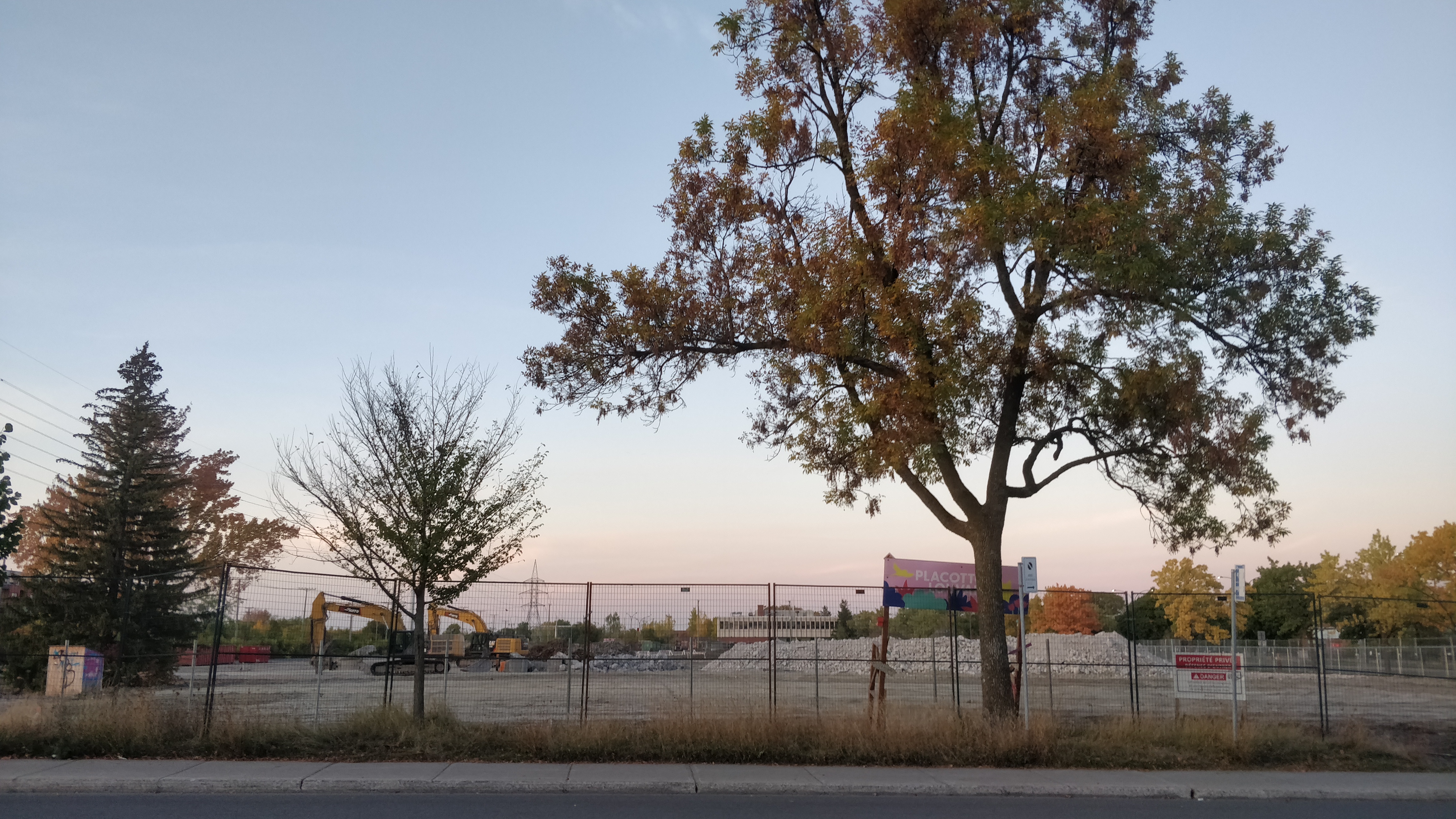 J’ai tardé à téléverser les photos, mais voici à quoi ressemble la portion ouest du futur écoquartier: des deux bâtisses précédemment présente, il ne reste qu’une portion de structure.