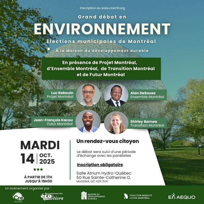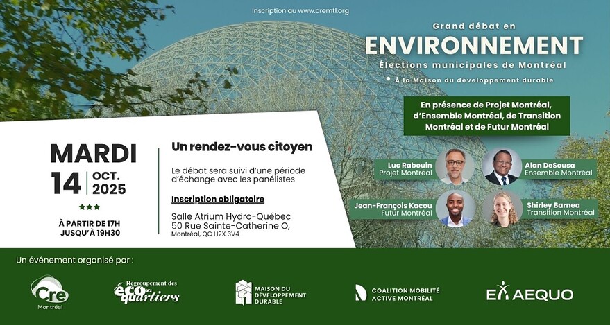 CRE-Montréal et Regroupement des écoquartiers ont un débat le 14 octobre