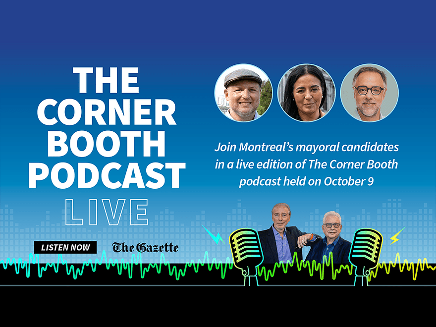 On Oct. 9, candidates in Montreal’s race for mayor will join Bill Brownstein and Aaron Rand on stage for a live edition of The Corner Booth.