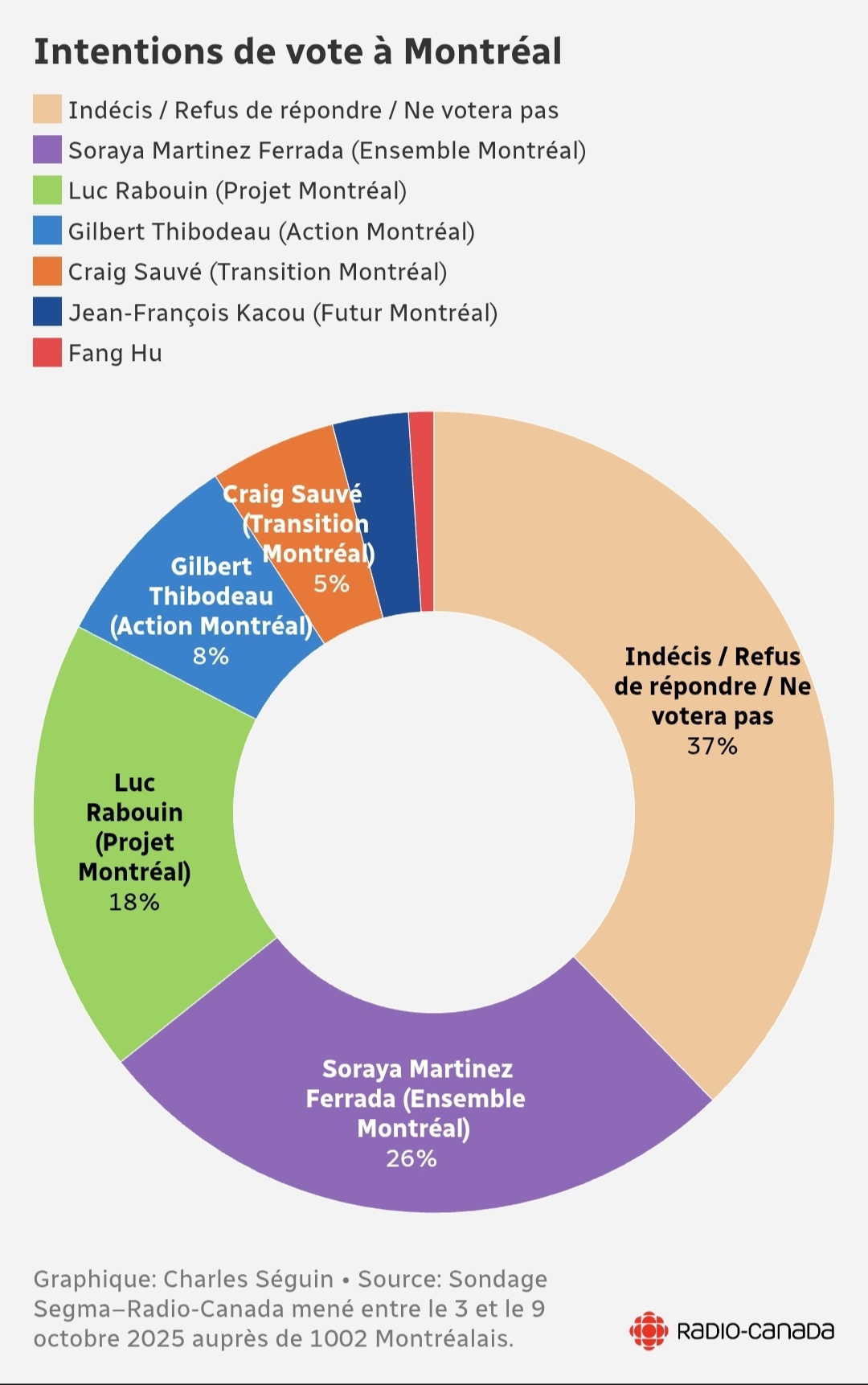 Mon analyse personnelle du sondage c’est que Thibodeau, Sauvé et autres ont leur “vrai score” tandis que pour les deux autres il faut répartir les indécis. Je crois aussi qu’en réalité c’est beaucoup plus serré à la mairie à cause du taux de participation plus élevé dans les districts PM.