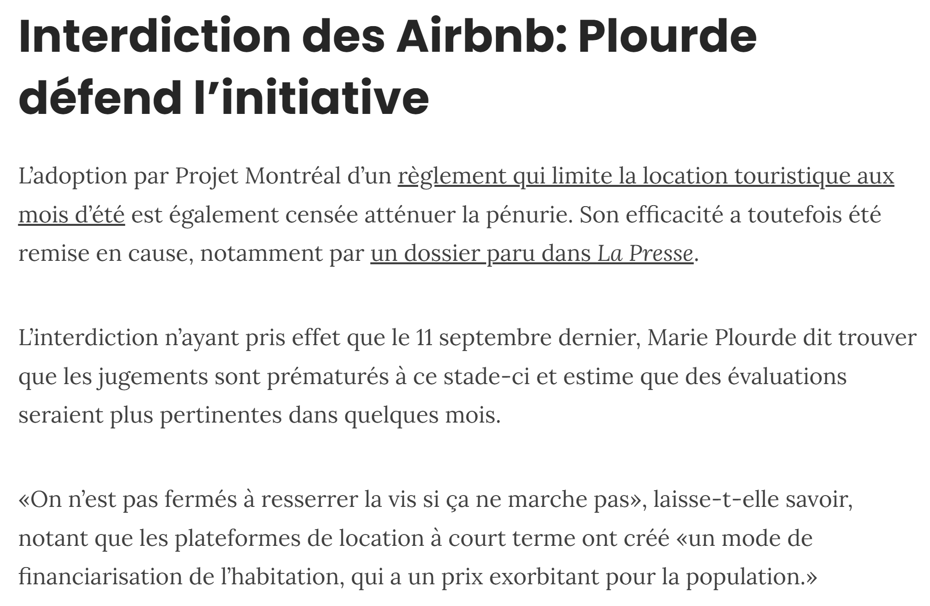 Dans une entrevue récente, en parlant de la période du 10 juin au 10 septembre où l’hébergement touristique en résidence principale est autorisé à Montréal, Luc Rabouin a dit :