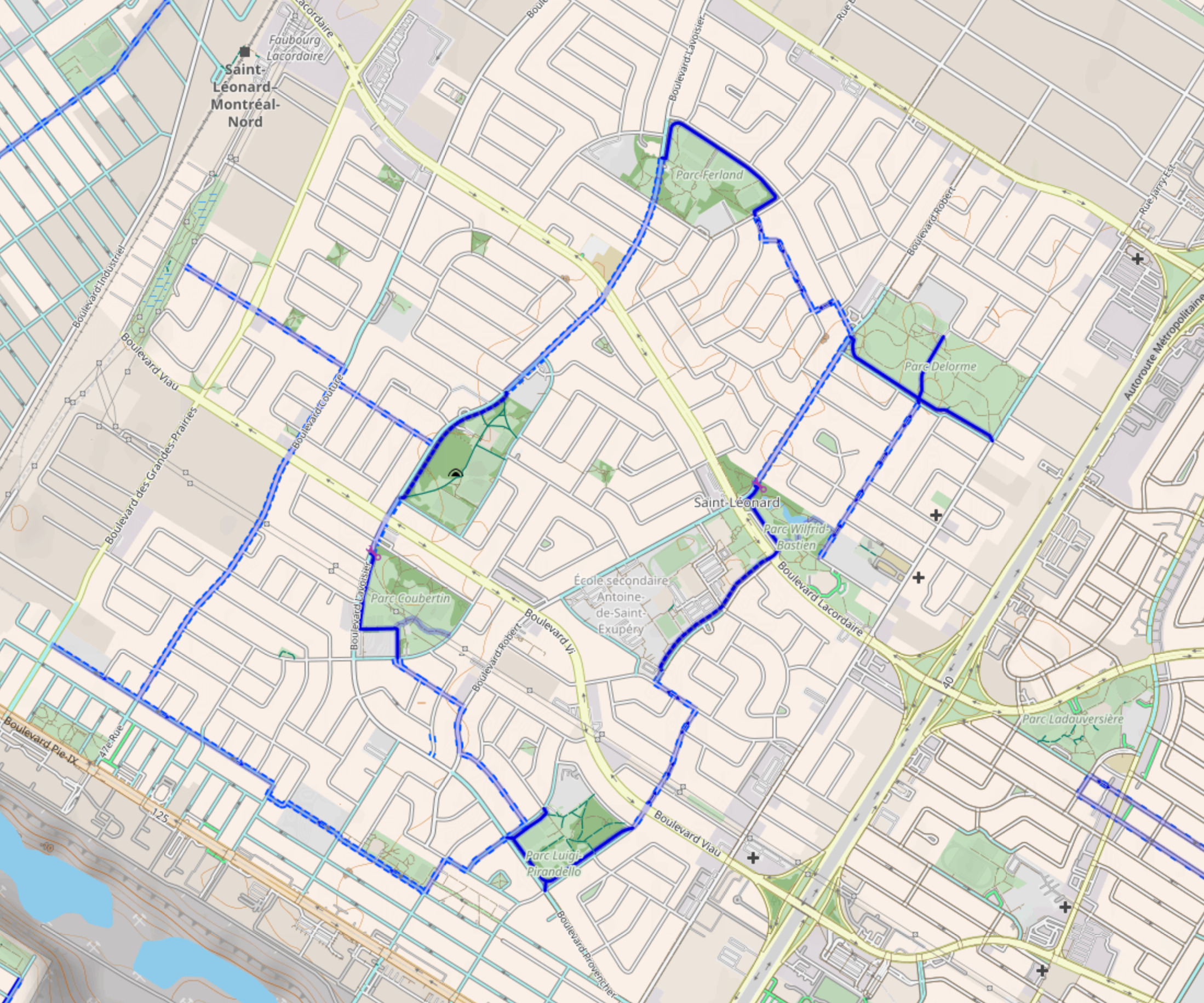 C’est pour l’essentiel une boucle qui dessert les écoles et les parcs, comme dans de nombreuses autres banlieues, avec un public essentiellement scolaire, boucle qui n’est connectée à rien. T’es comme prisonnier de Saint-Léonard, condamné à y tourner en rond.