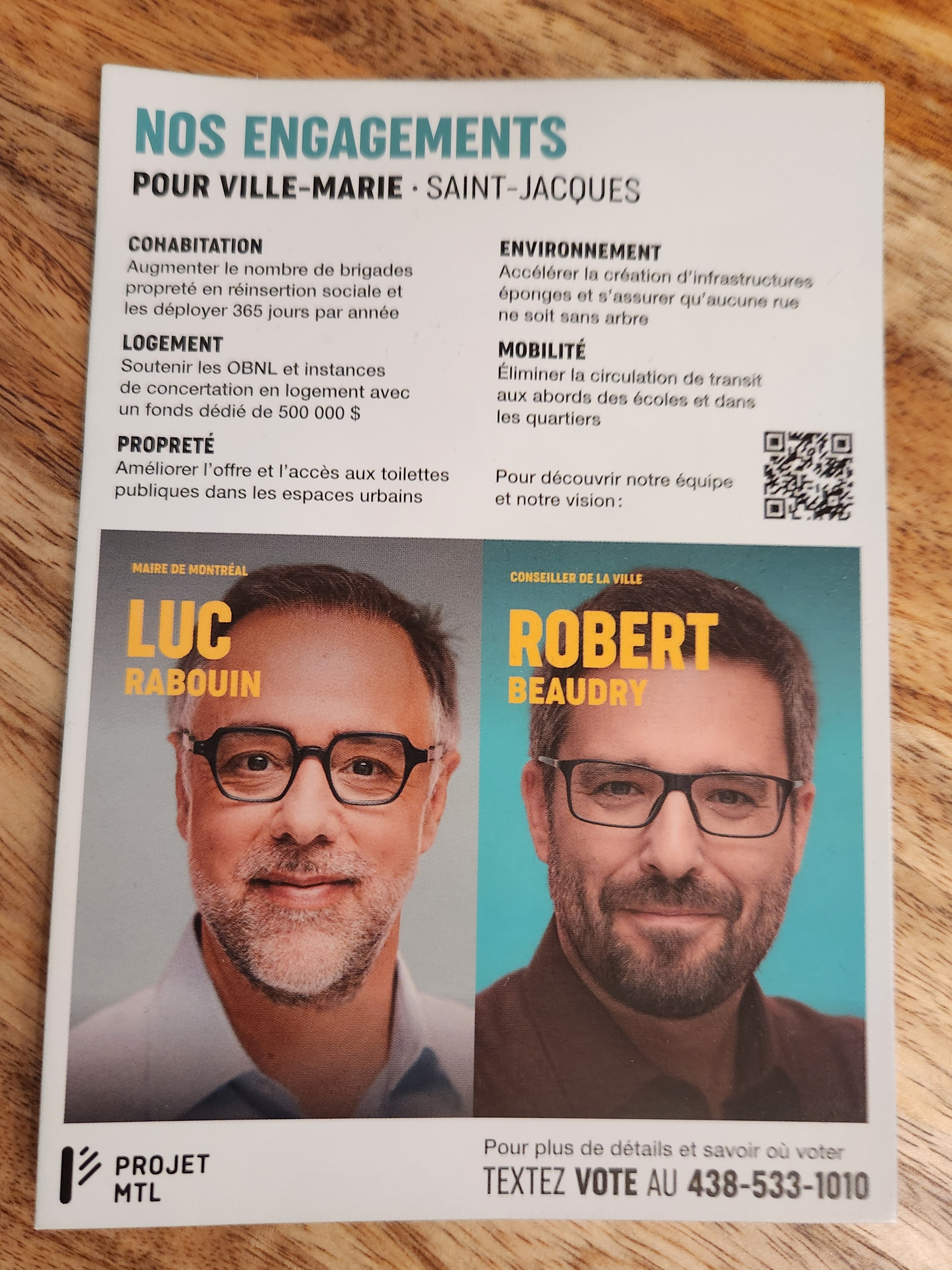 Cela étant dit, mes opinions au municipal sont plutôt en faveur du transport actif, apaisement de la circulation, verdissement, transport en commun, etc. Non seulement ça, mais les candidats de PM sont clairement là pour les bonnes raisons. Ils sont vraiment passionnés par les enjeux et se donneront cœur et âme.