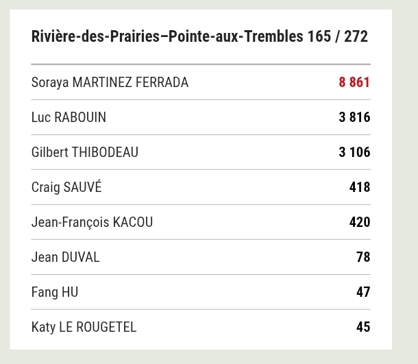 Quant à Rabouin, son résultat final tend vers un score comparable à celui de Coderre, malgré la présence de Craig Sauvé qui lui faisait de la compétition. C’est loin d’être catastrophique.