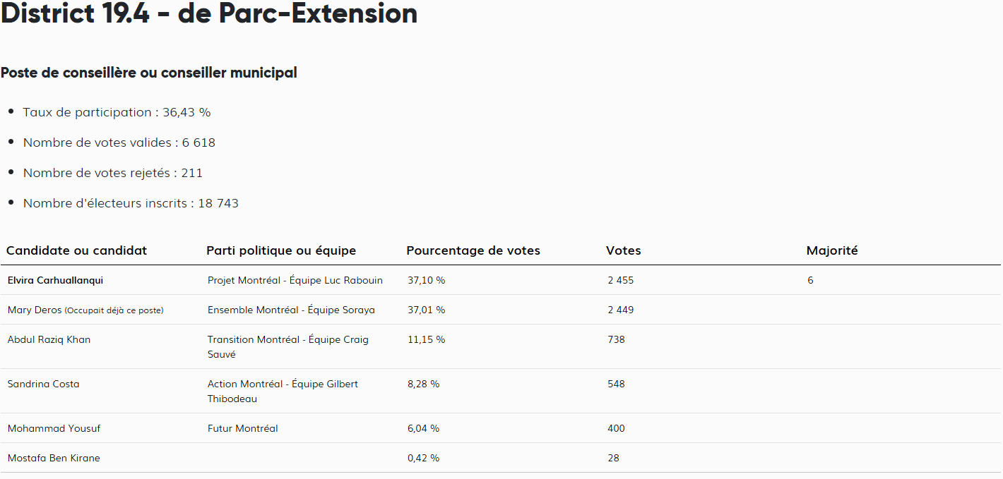 Oui c’est ce que je veux dire, Île-Bizard et Outremont ont des taux de participation plus élevés que le reste de la ville, ce sont aussi les deux arrondissements avec le plus petit nombre d’électeurs par district électoral.