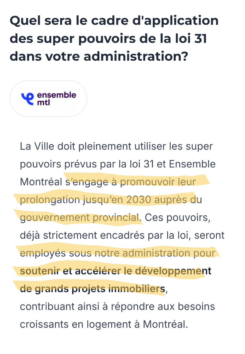 Pour avoir écouter plusieurs personnes dans le domaine discuter de ses propositions pour l’itinérance, ses souhaits sont louables mais aucunement réalistes, et consisteront principalement à camoufler et/ou déplacer le problème comme l’ont fait tant d’autres villes. Malheureusement, tant que le gouvernement du Québec ne fera rien, les municipalités sont prises au dépourvue peu importe qui est à la mairie.