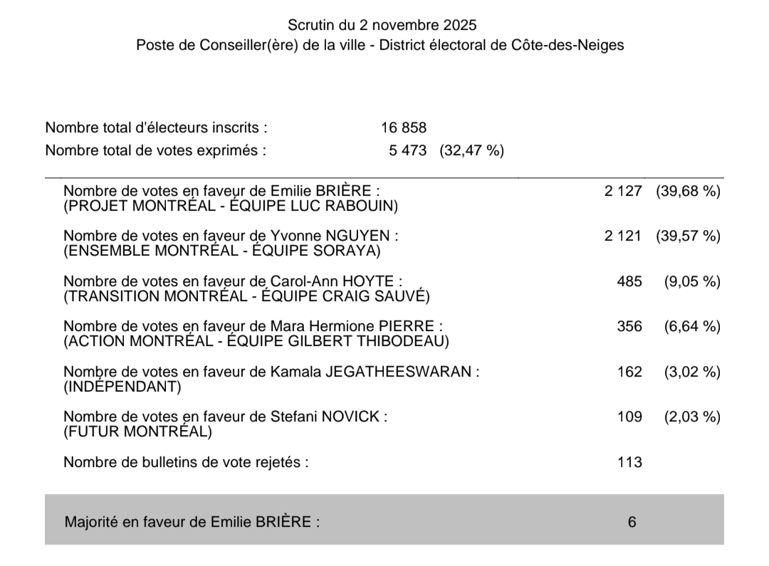 Finalement la majorité à Lachine est de 26 votes et non 1.