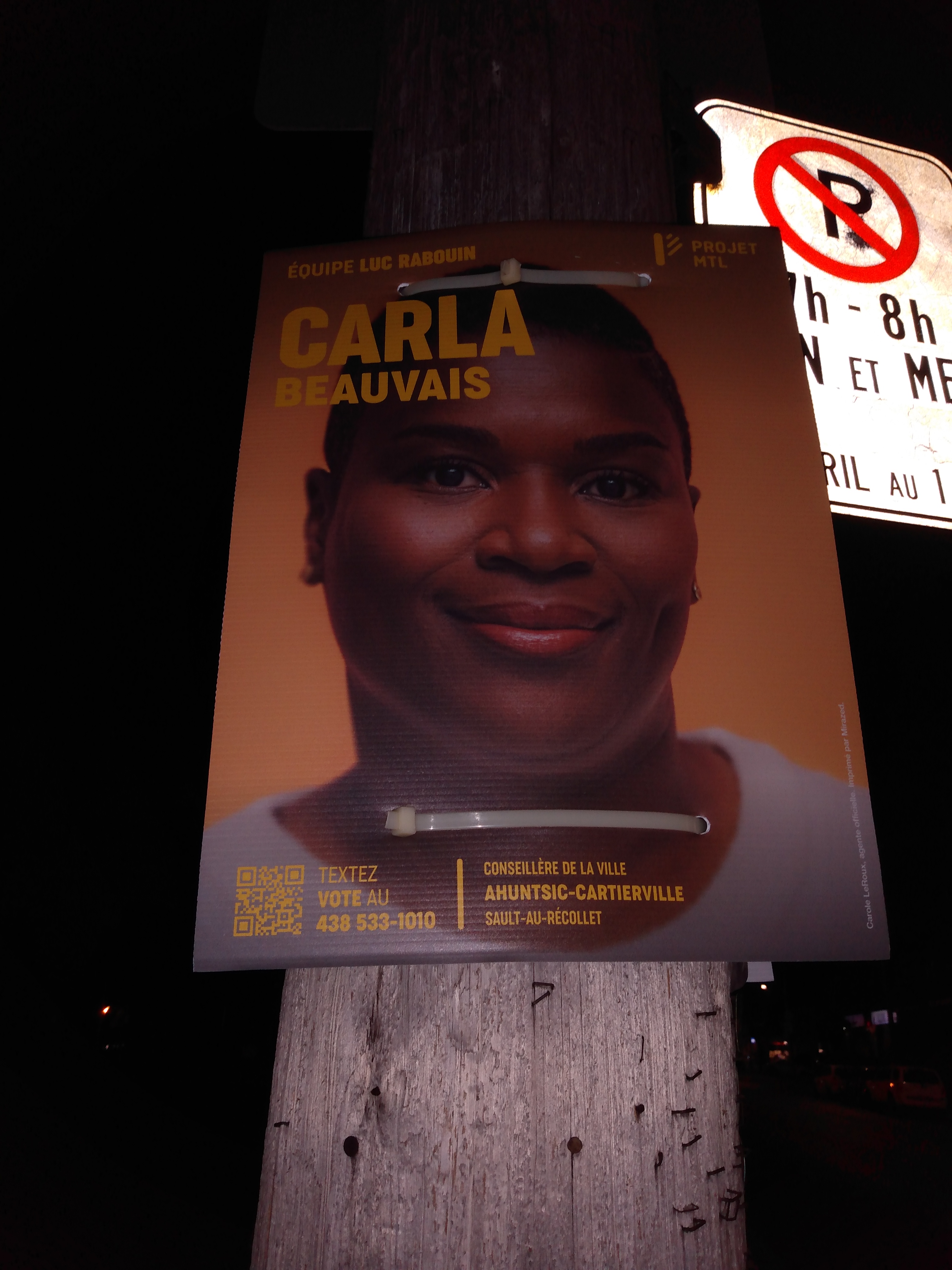 J’en ai vu une jumelée avec la candidate à la mairie d’Ahuntsic sur l’autre face