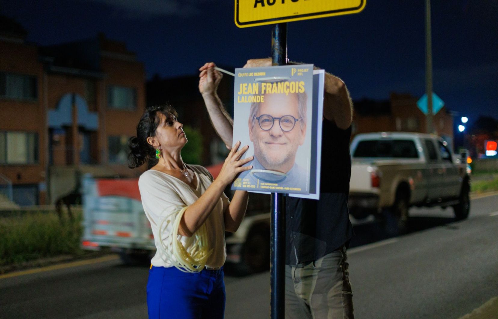 Jeudi 18 septembre, 20 h, à quelques heures du déclenchement officiel des prochaines élections municipales, une centaine de bénévoles du parti Projet Montréal sont rassemblés dans un local de campagne encore à peine aménagé de la rue Saint-Hubert. Certains discutent, d’autres dégustent une pointe de pizza, mais tous sont là pour une raison : aller poser des pancartes électorales à travers l’arrondissement de Villeray-Saint-Michel-Parc-Extension.