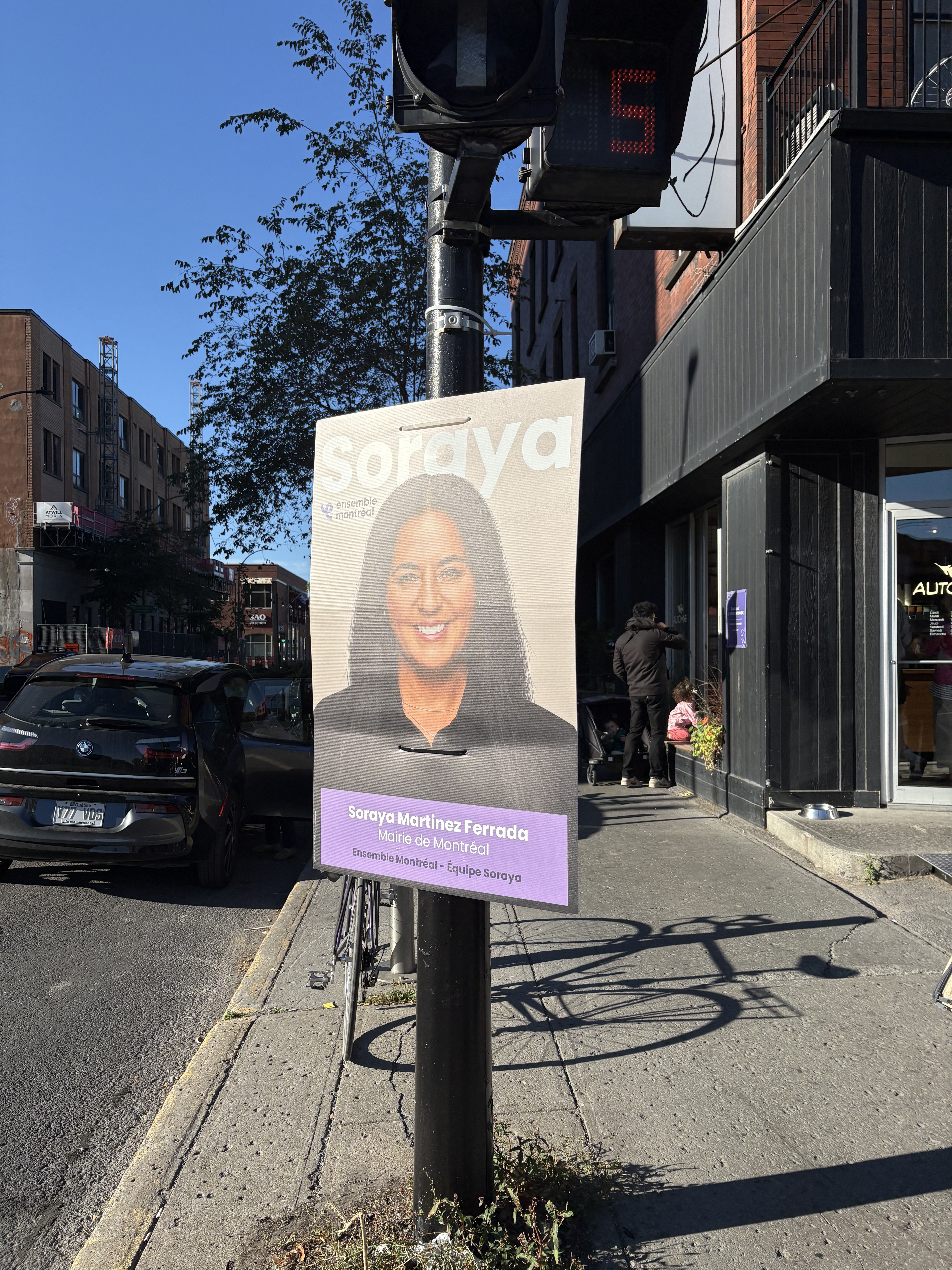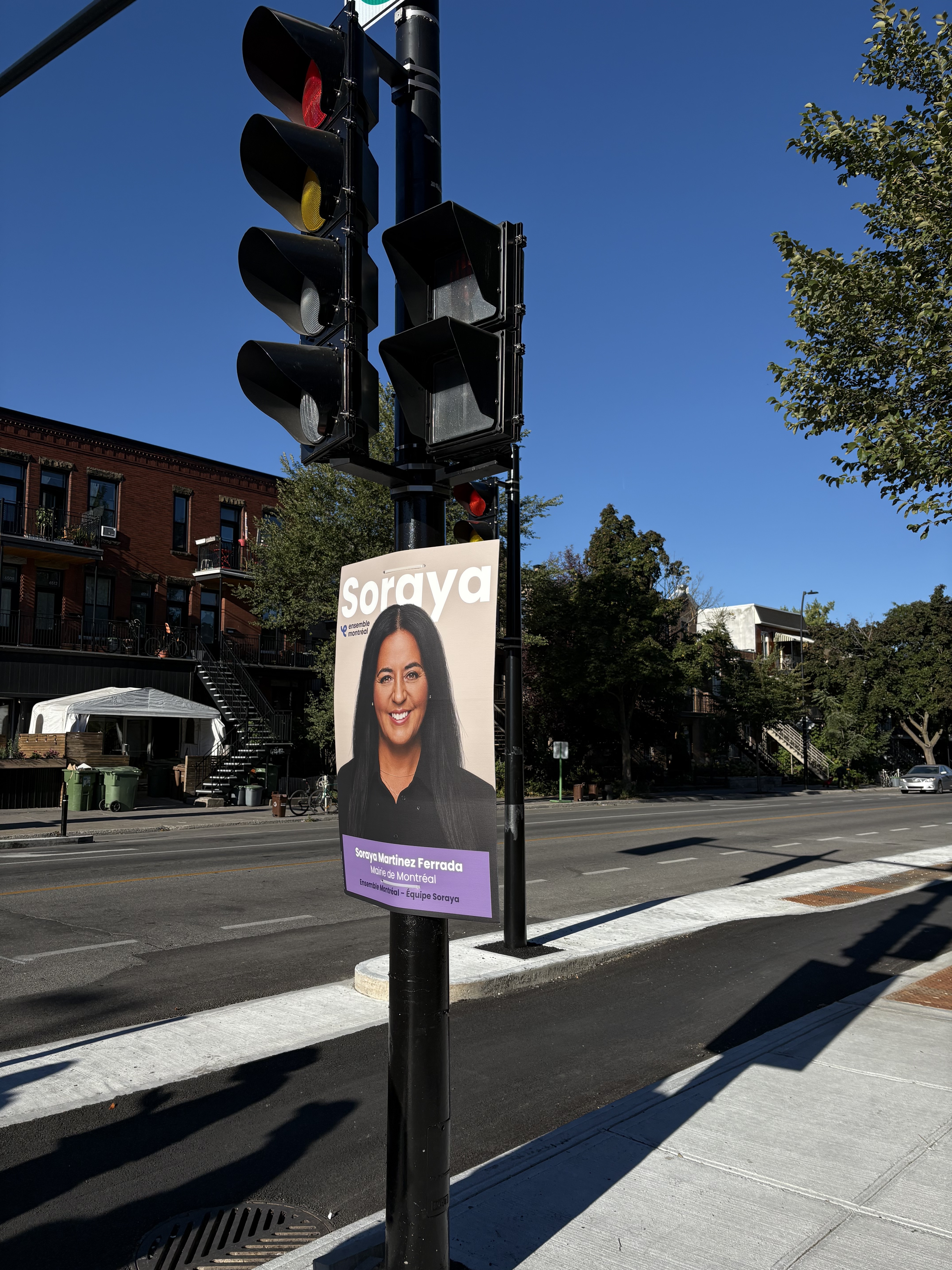 Je me suis promenée un peu dans l’Est du centre-ville (McGill au quartier des spectacles) aujourd’hui et j’ai été étonnée par le peu d’affiches de Projet Montréal que j’ai vues.