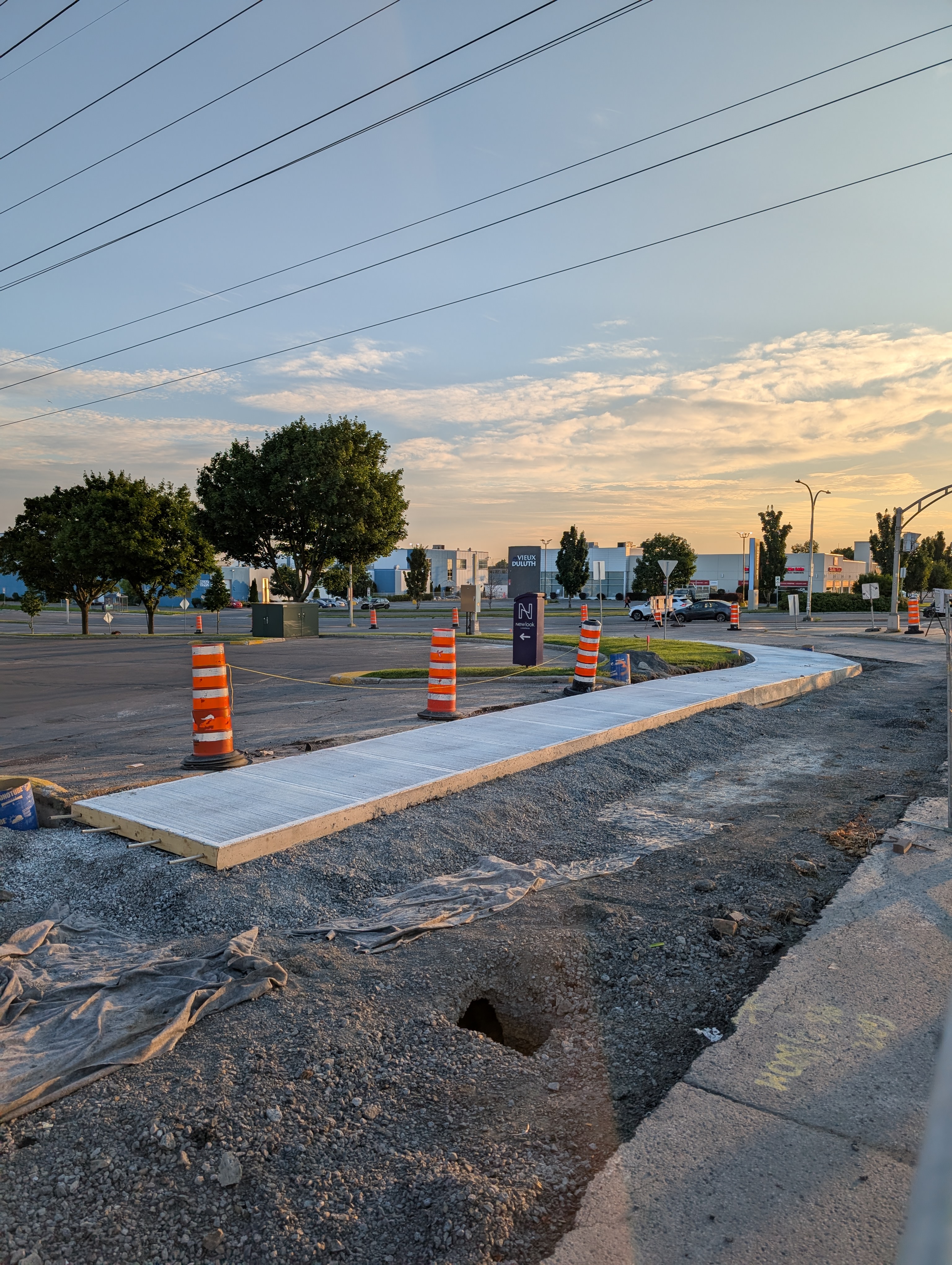 Les travaux de bétonnage des trottoirs en direction ouest sont complétés à environ 75 %.