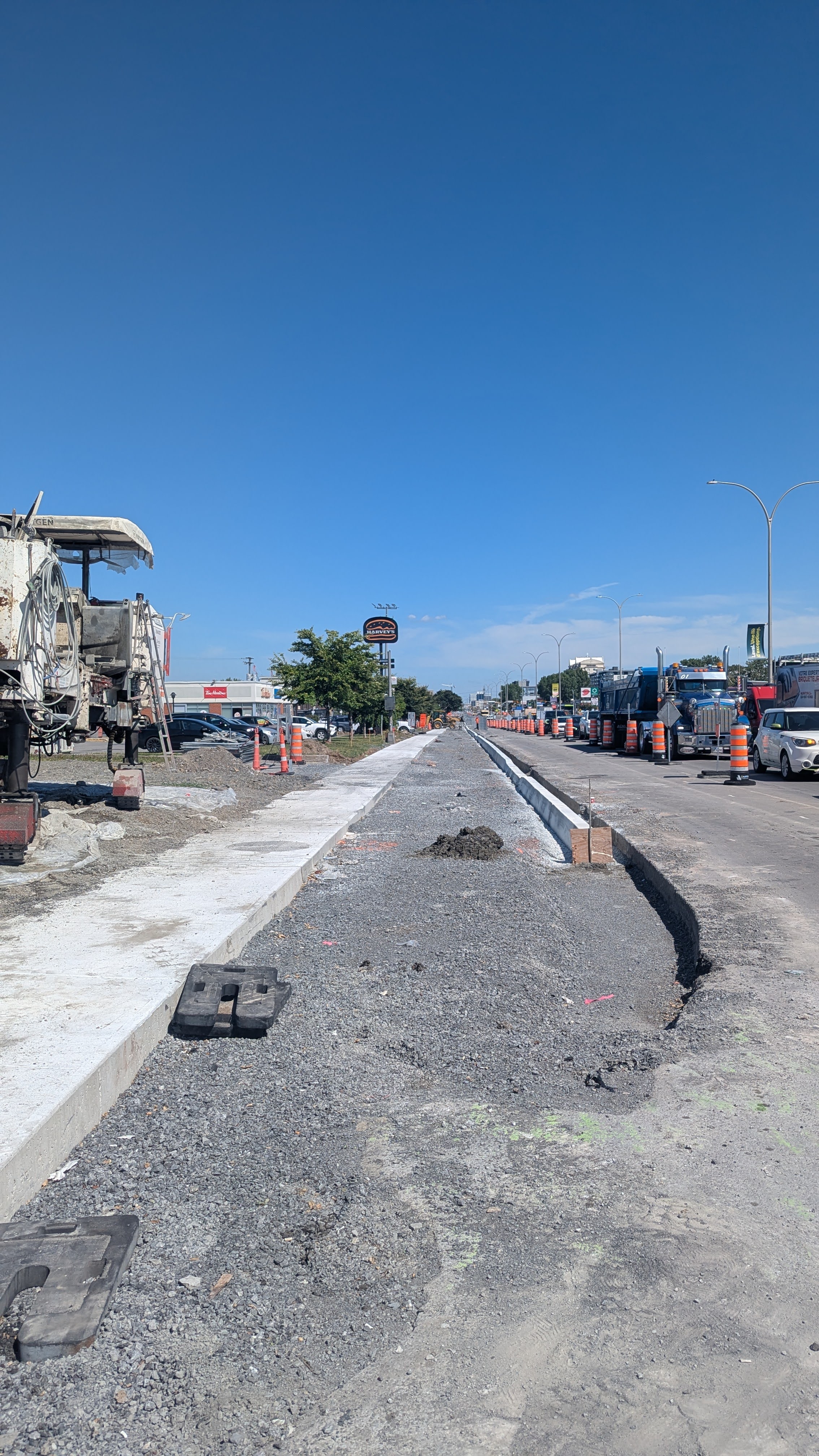 Les travaux de bétonnage des trottoirs et bordures entre le boulevard Industriel et le boulevard Le Corbusier sont complétés.