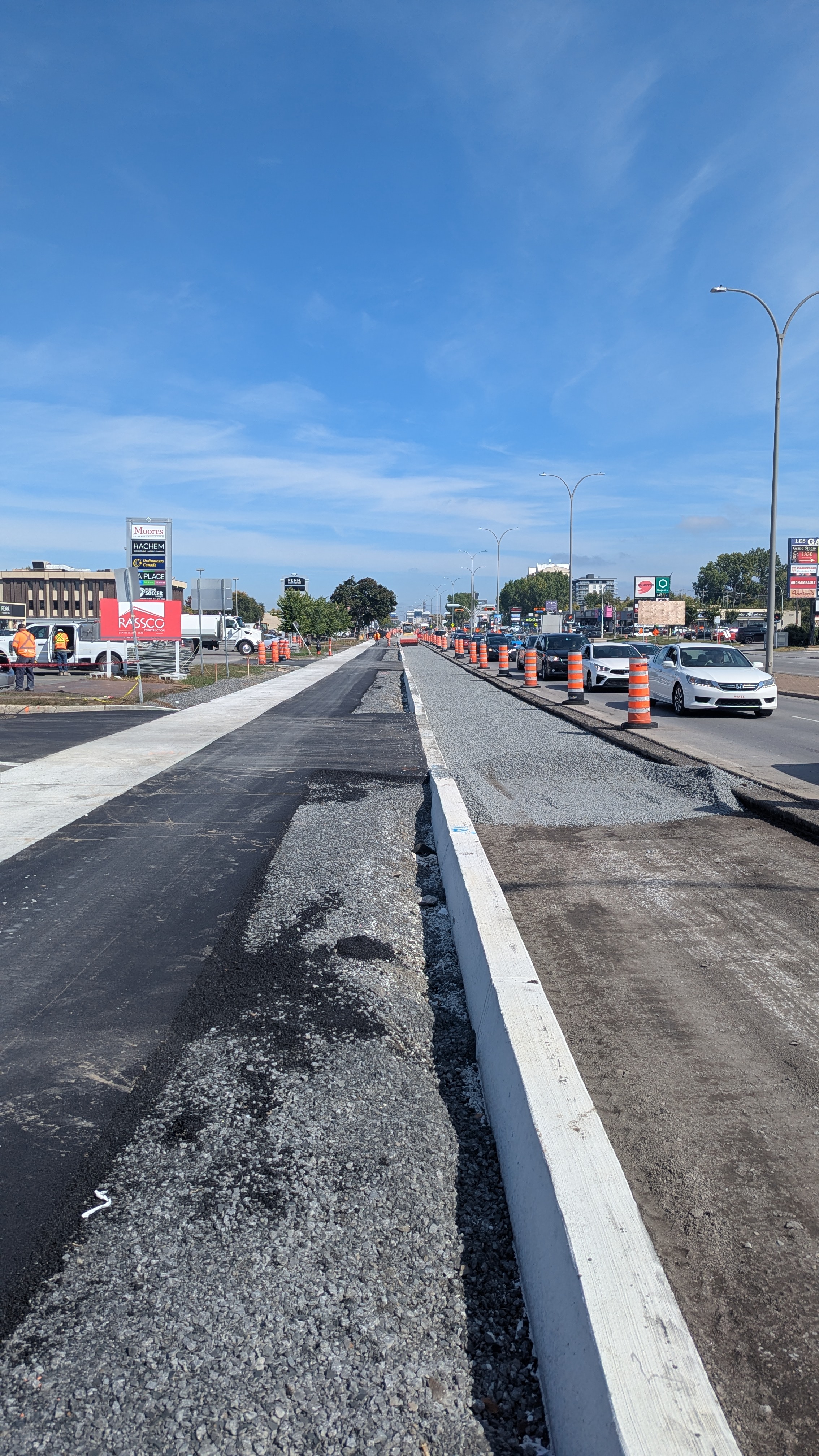 Et bordures faites dans le lot central, en plus des travaux qui débutent sur intersections du viaduc St-Martin/Route verte sous peu selon plus récente MAJ courriel de RELAM ![]()