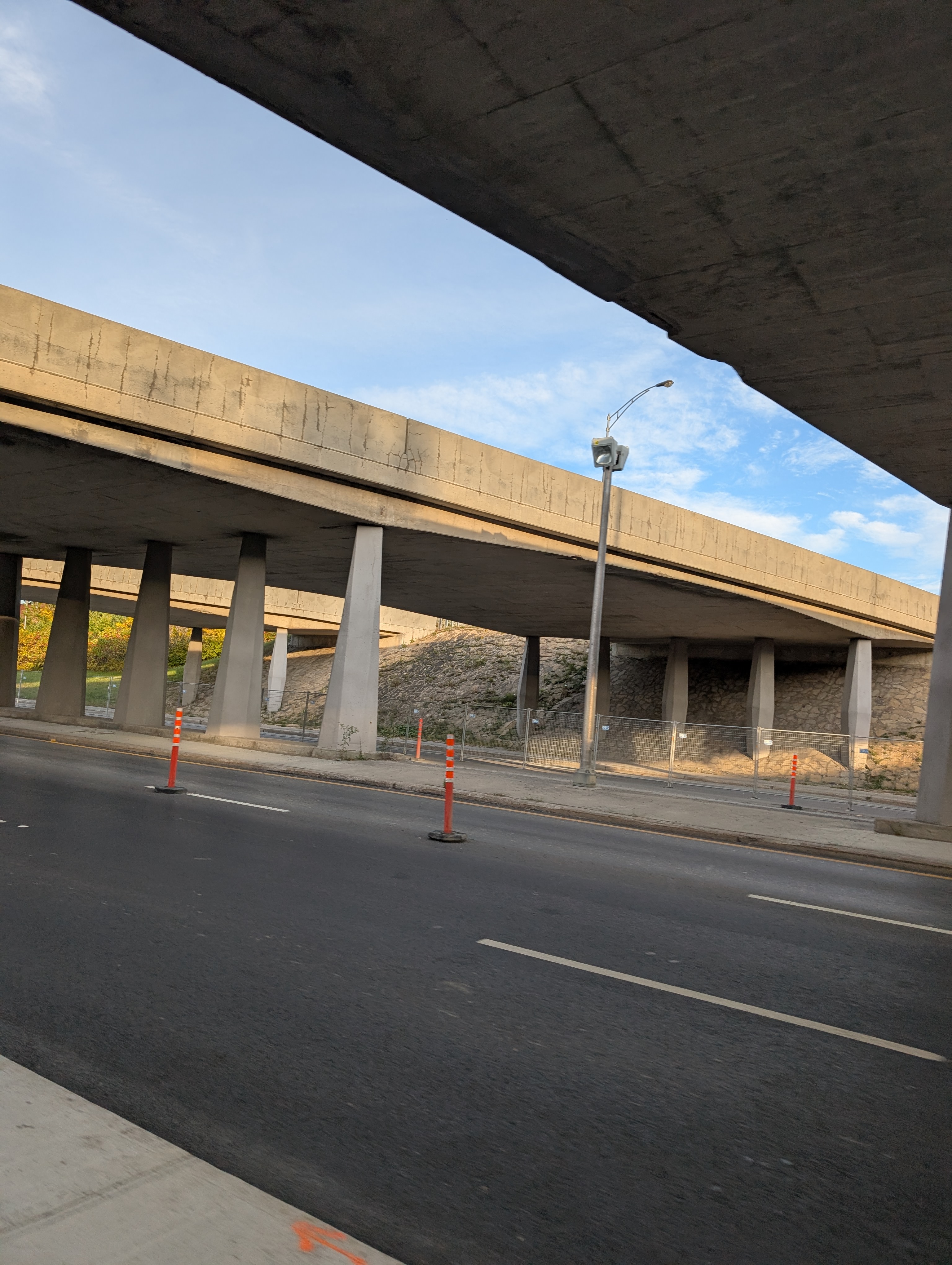 Intersection surélevée Sillery/St-Martin ce AM, en entrant vers Route verte ou pour transit vers l’ouest sur St-Martin