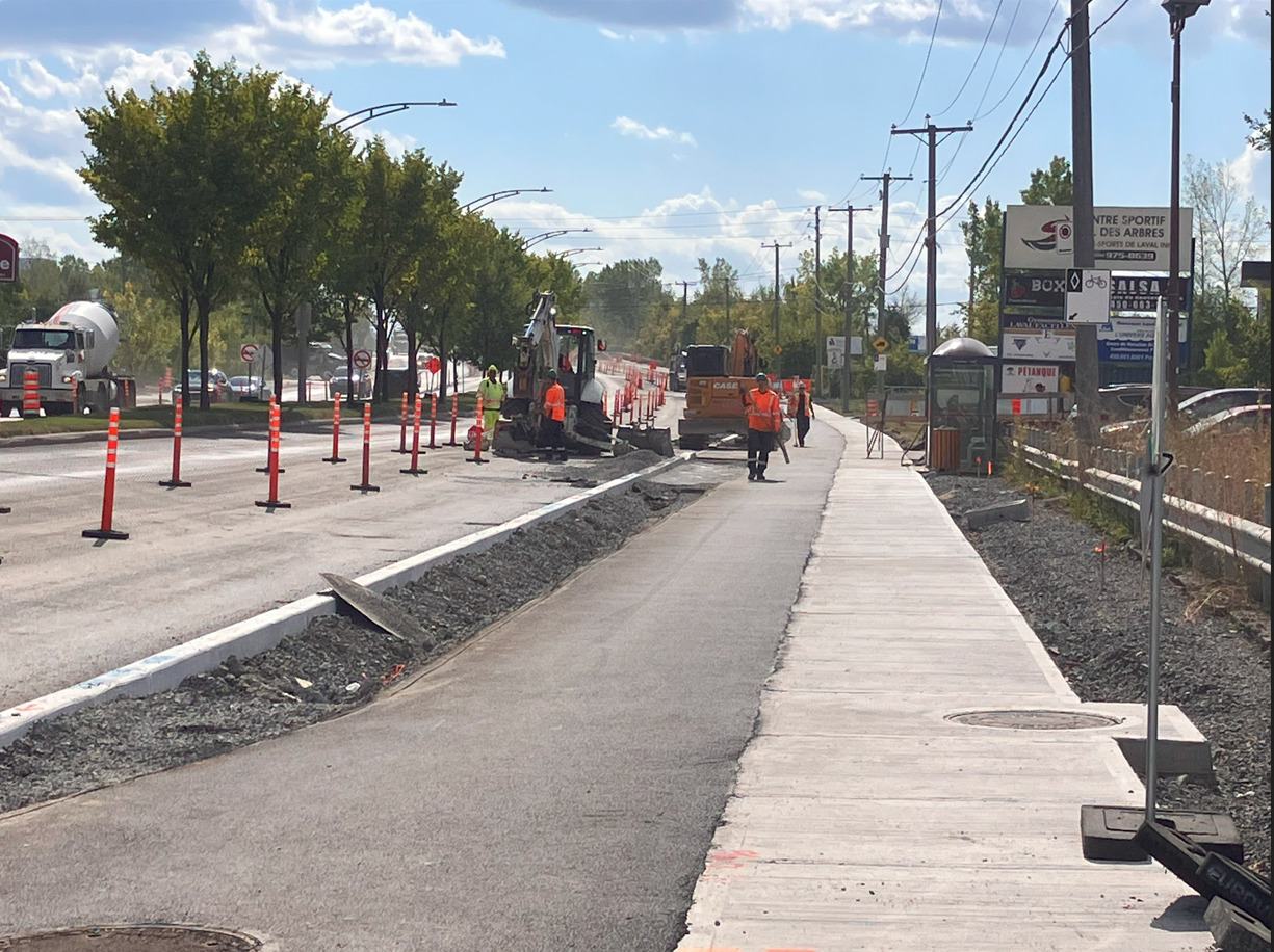 - Les interventions prévues cette semaine incluent le pavage de la piste cyclable du côté nord, entre le boulevard Industriel et le boulevard Le Corbusier.