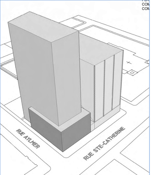 D’ailleurs, dans le document du 482 Rue Sainte-Catherine Ouest, on voit une coupe et un lien avec la phase 2 du projet 1 Square Phillips.
