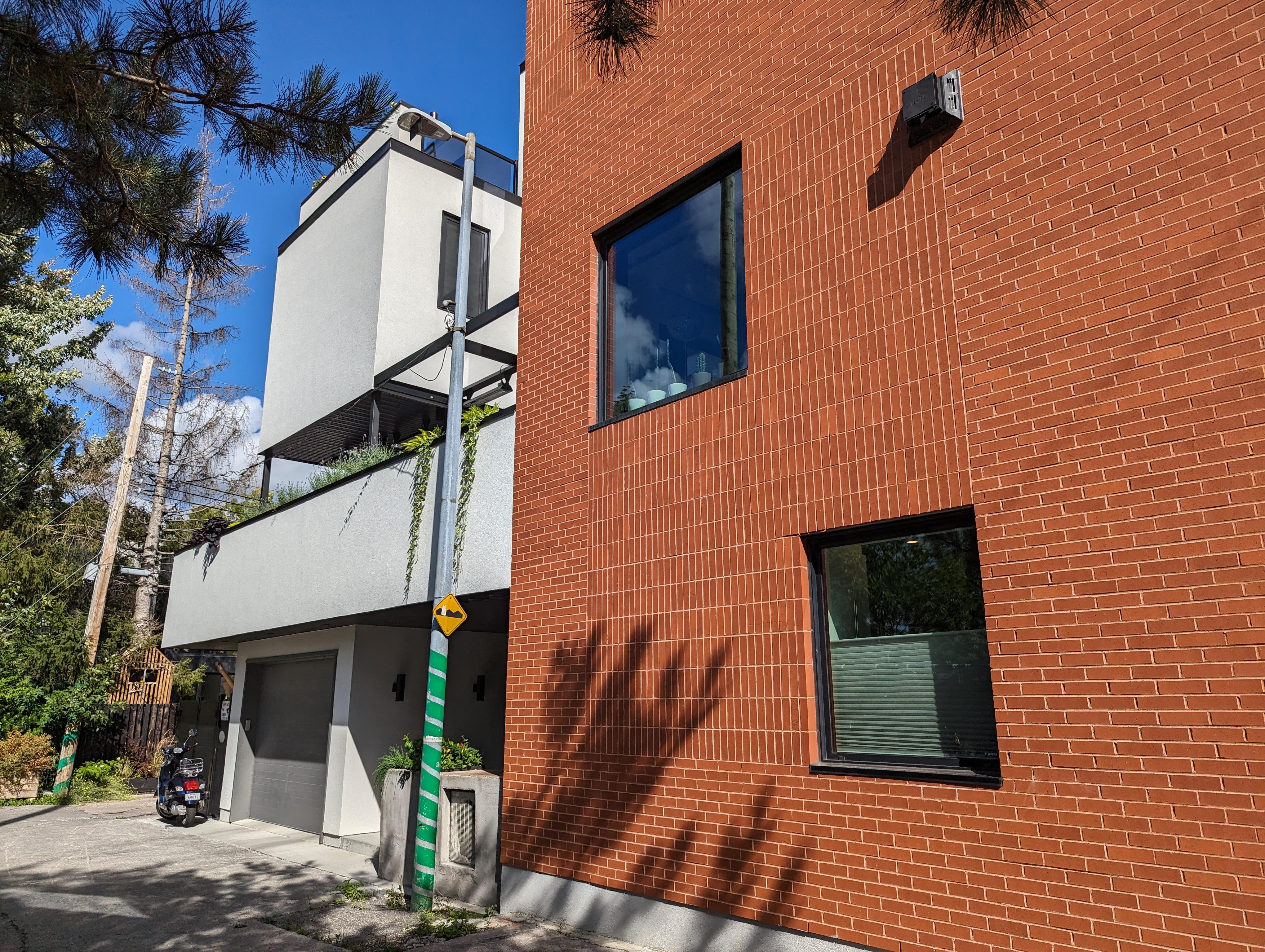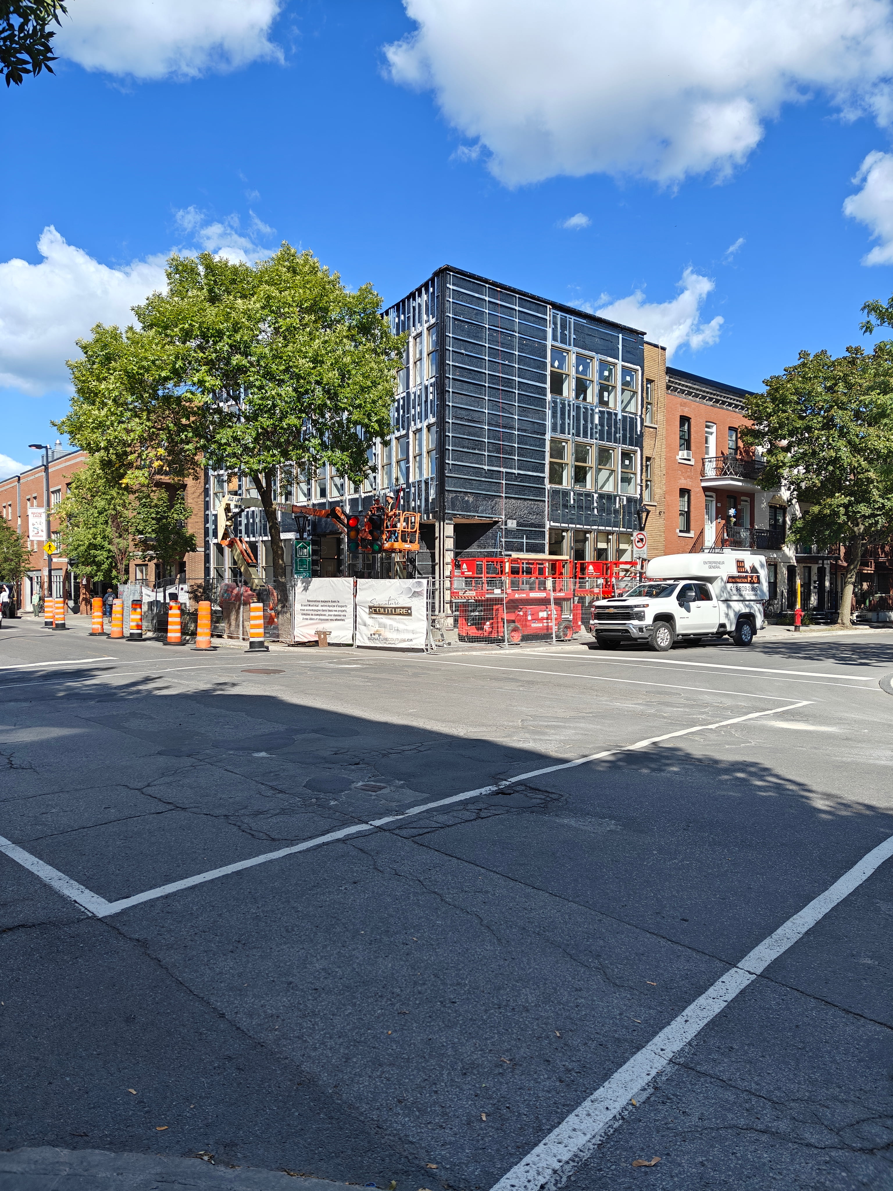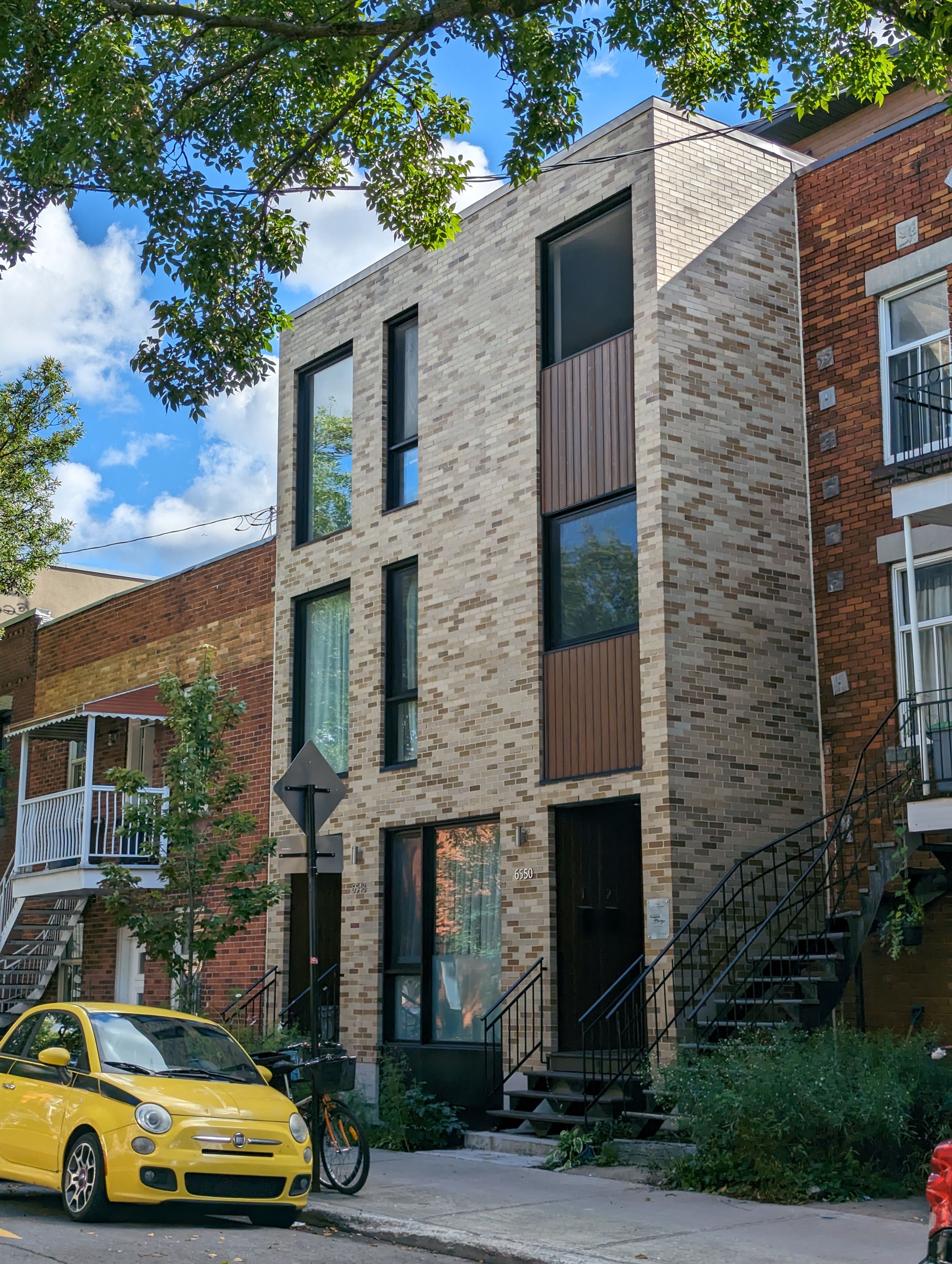 6660 Rue de la Roche. Le bâtiment me semble récent. J’adore la façade en brique du balcon. (On peut voir la vitre l’en arrière)