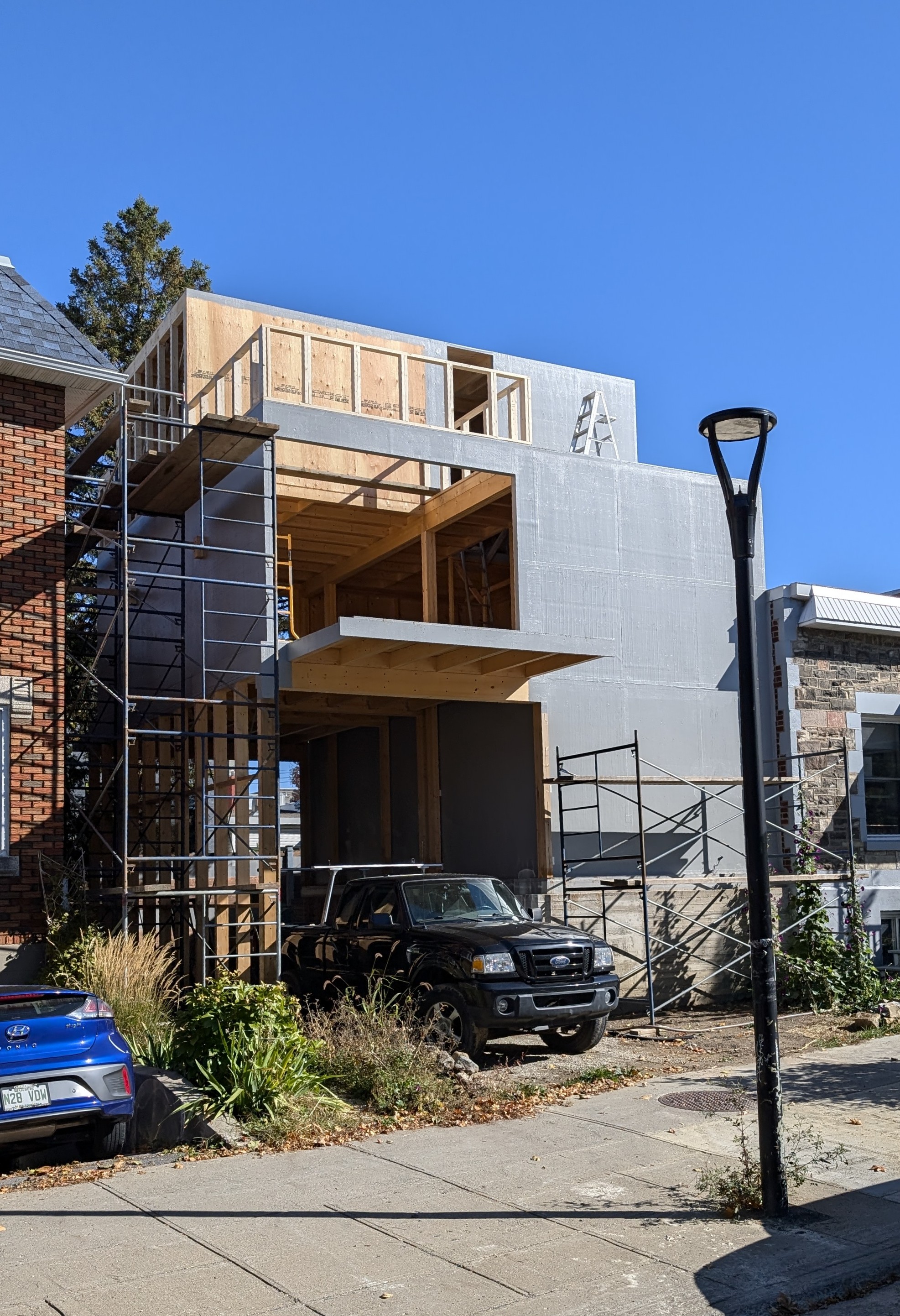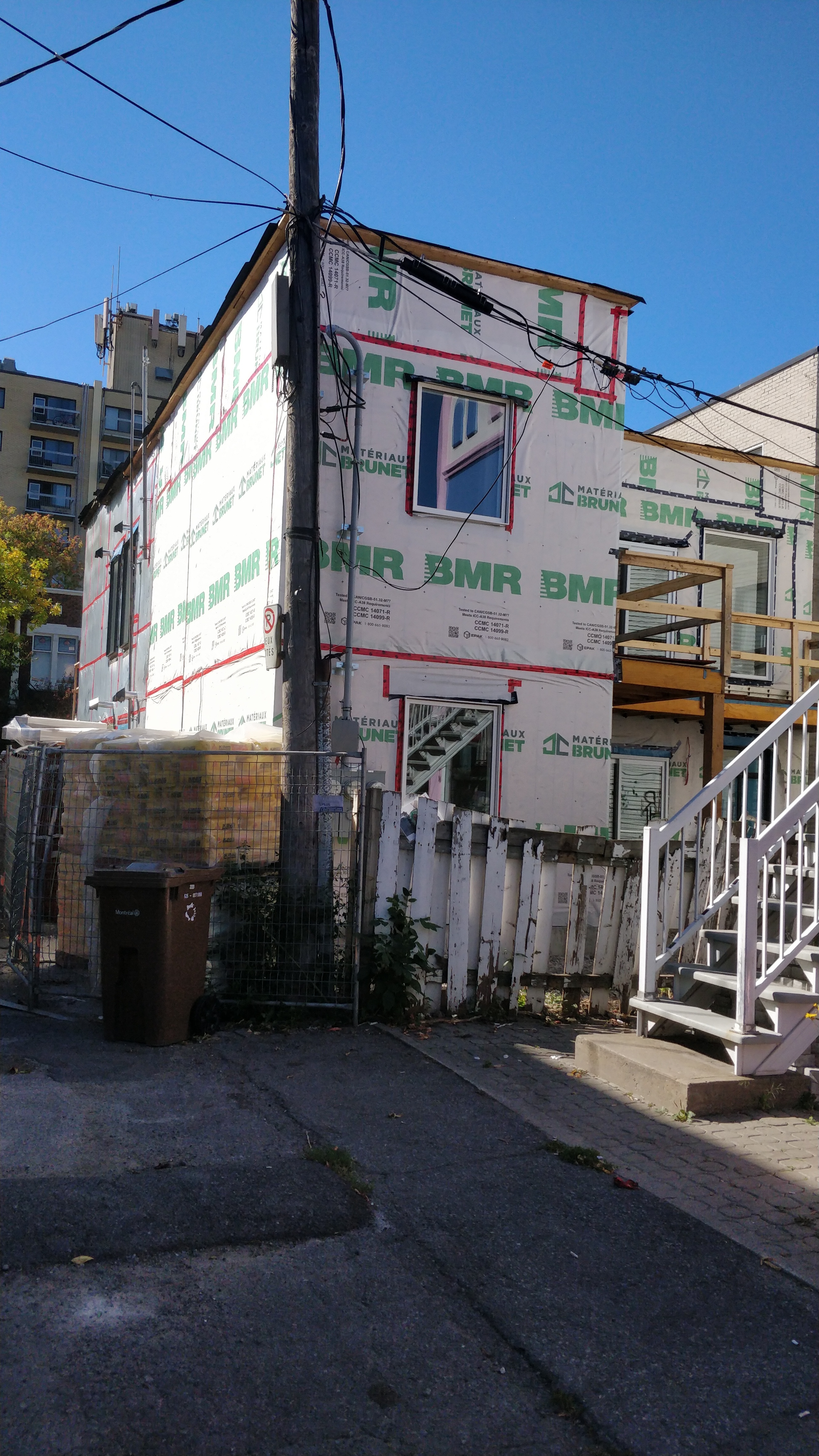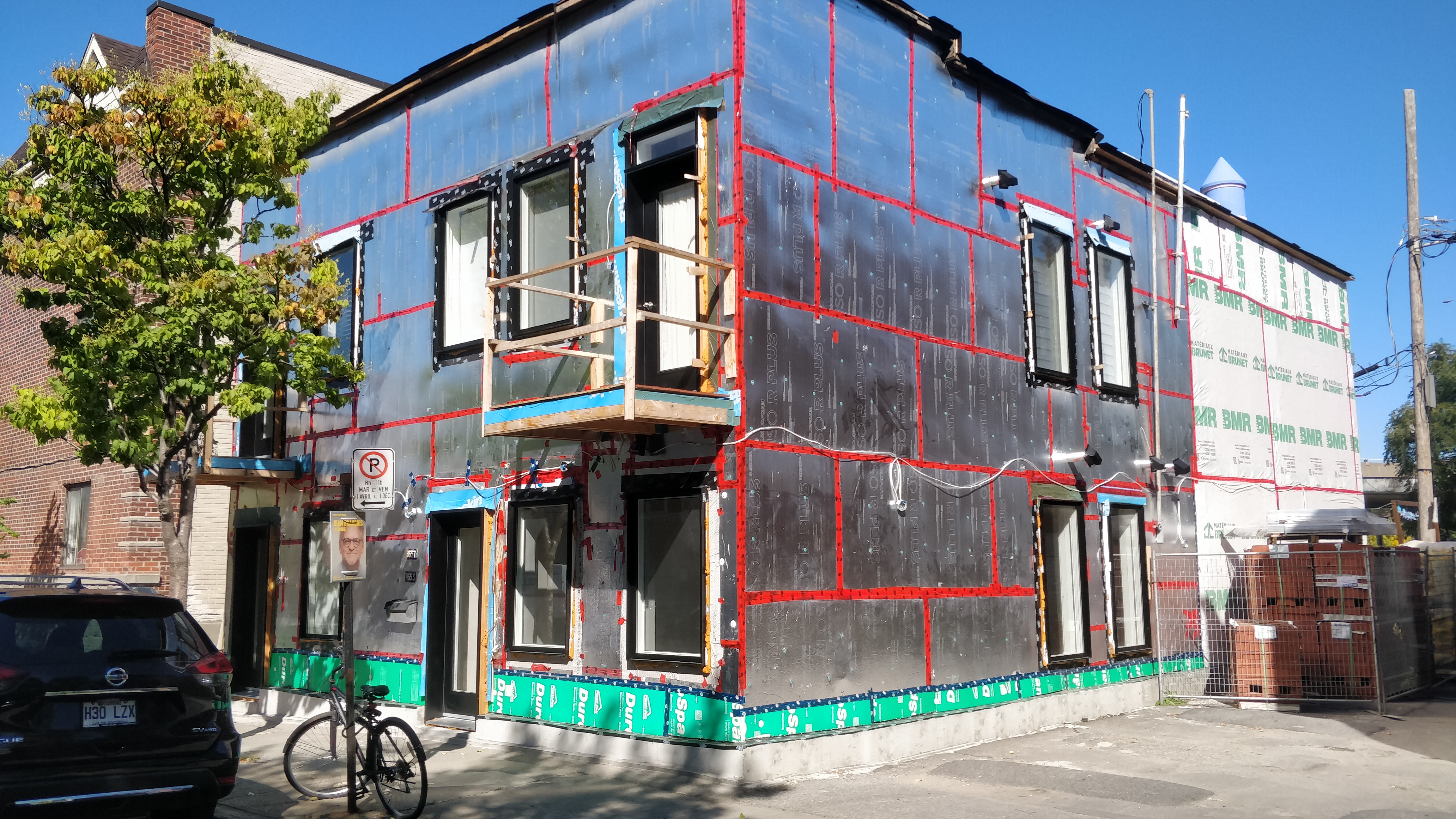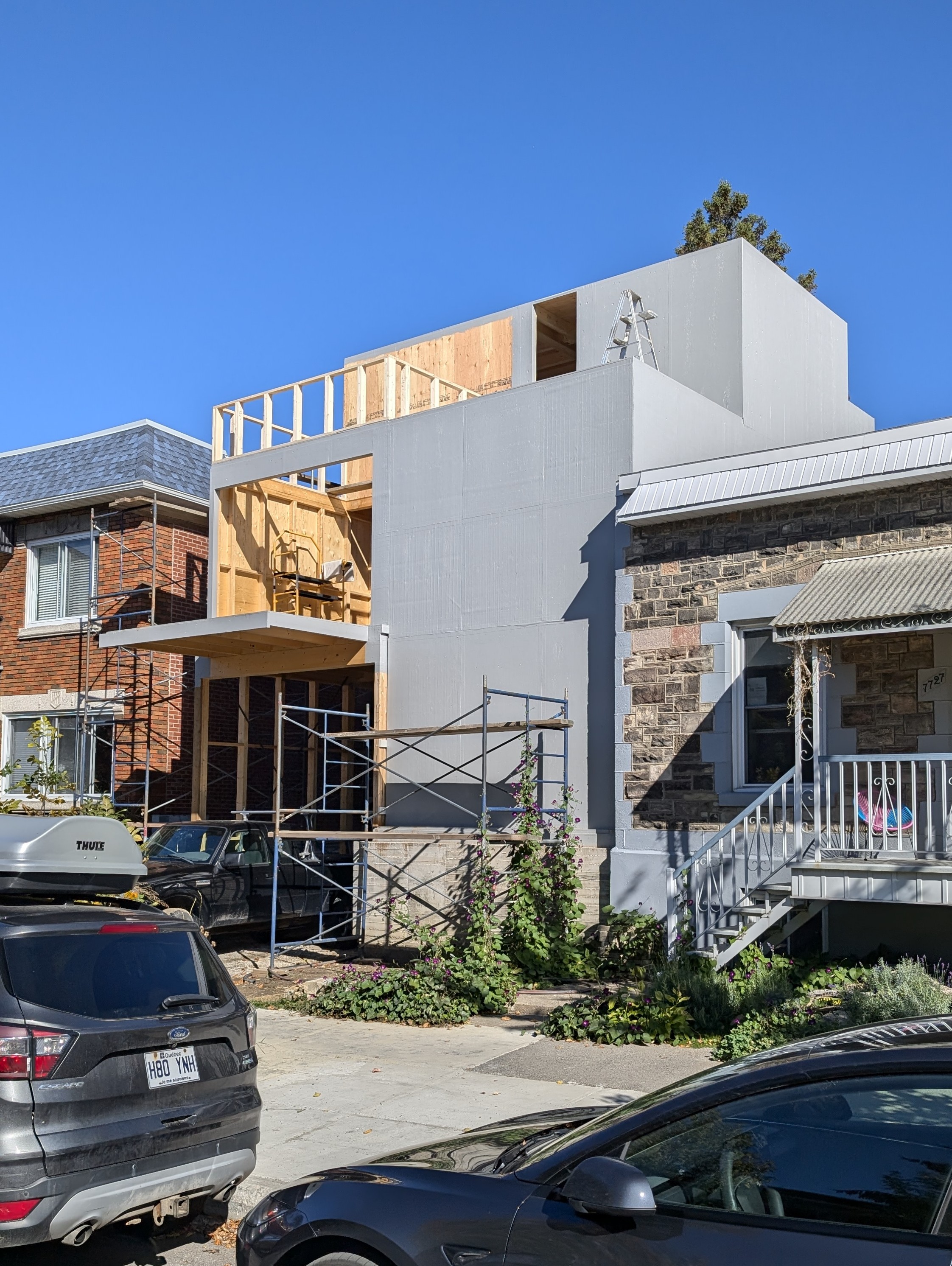 Je n’ai pas de photos pour le 8626 Av. De Chateaubriand, mais il y avait aussi des travaux et je pense qu’un étage a été ajouté. J’essaierai de passer de nouveau.