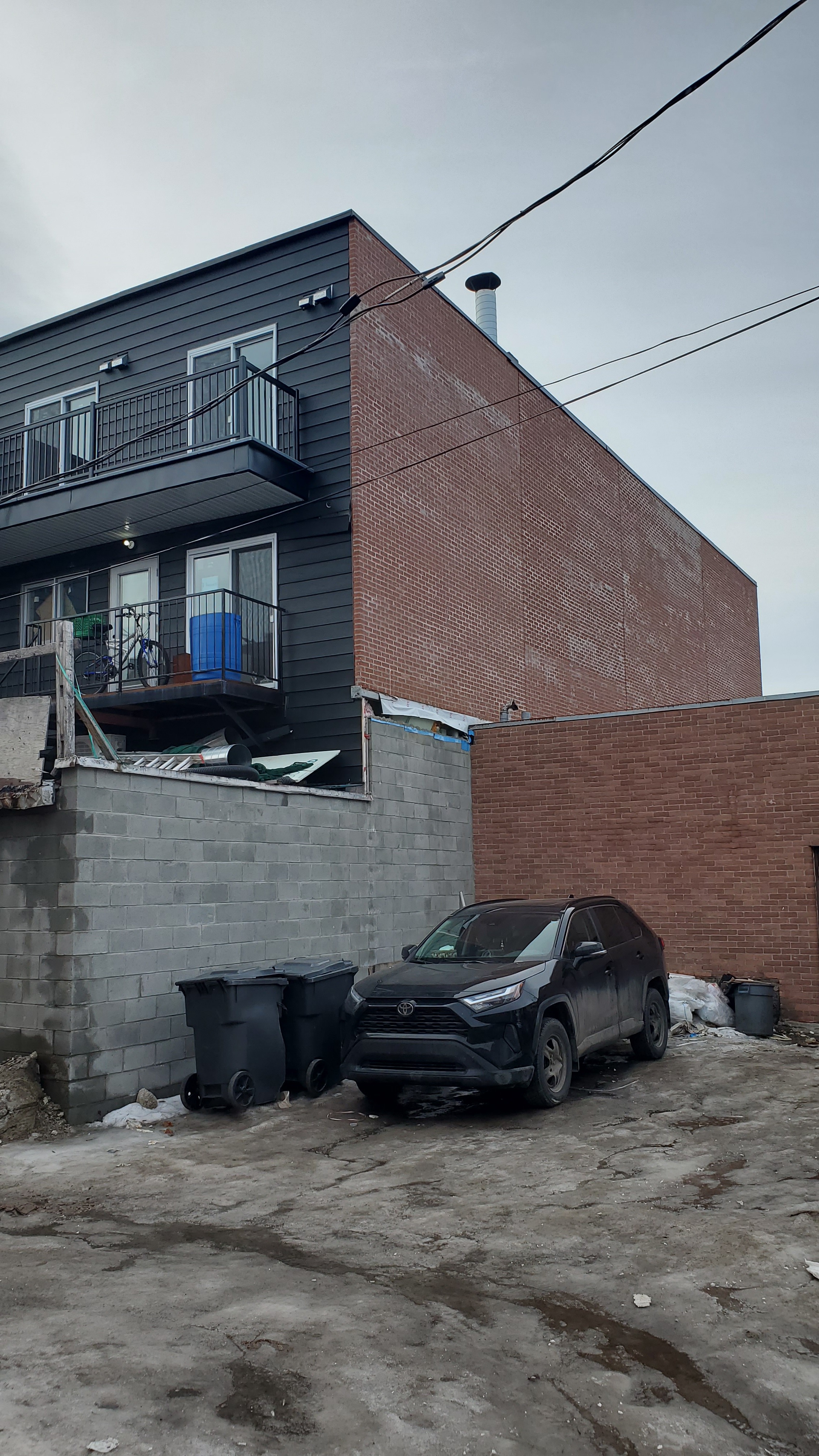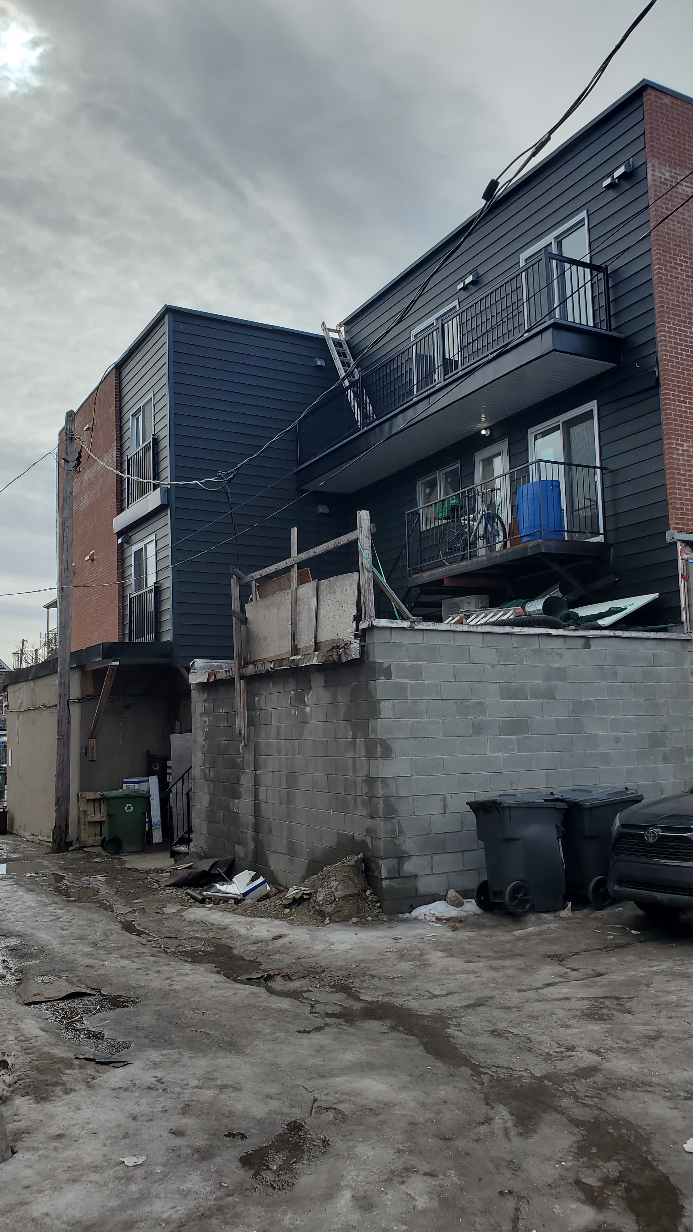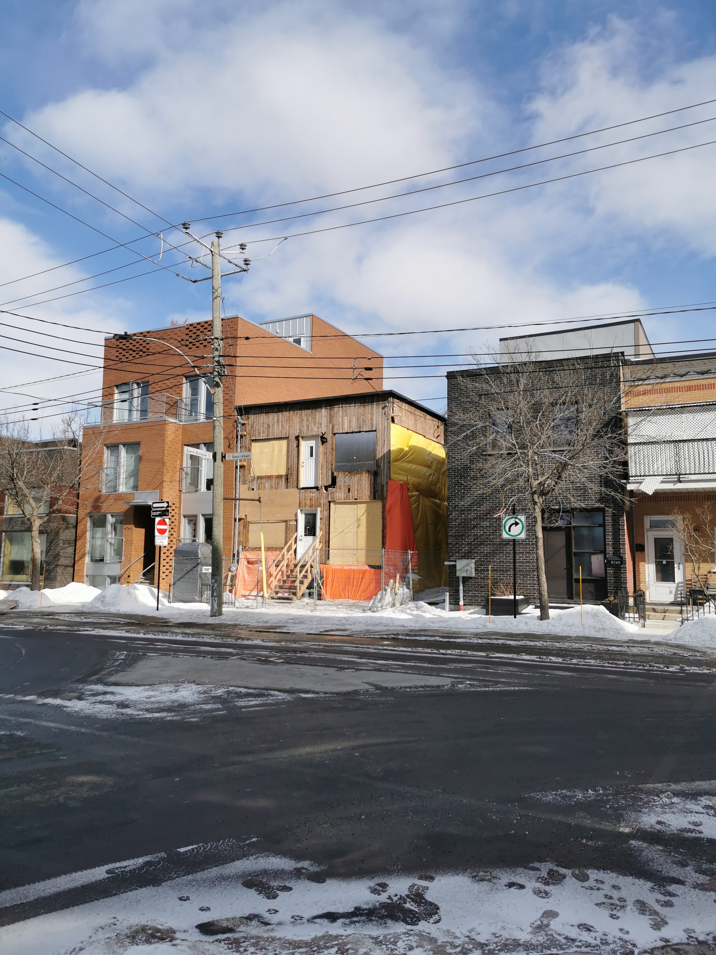 Ajout de deux étages par dessus le 542 av. Ogilvy et par dessus le garage à l’arrière du 552 av. Ogilvy ( 7299 av. de l’Épée ? ) Je n’ai pas vu de fil.