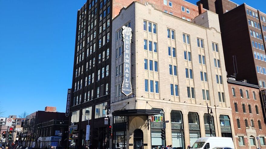 Bien que l’entreprise semble maintenant peser toute la valeur patrimoniale de cet objet à vocation commerciale, ce repère a bien failli disparaître du paysage urbain en 2018. L’imposante enseigne en forme de lyre avait été décrochée un matin par Québecor, conformément au bail échu d’Archambault, qui continuerait à faire commerce dans l’immeuble adjacent, sis au 510 rue Sainte-Catherine Est.