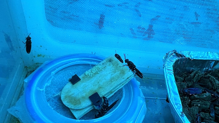On n’a pas le droit d’utiliser nos larves dans l’alimentation du bétail au Canada, explique M. Provost. […] Pour l’instant, on a un très beau marché américain. C’est sûr qu’on aimerait vendre plus localement, donc il faut travailler avec la réglementation canadienne.