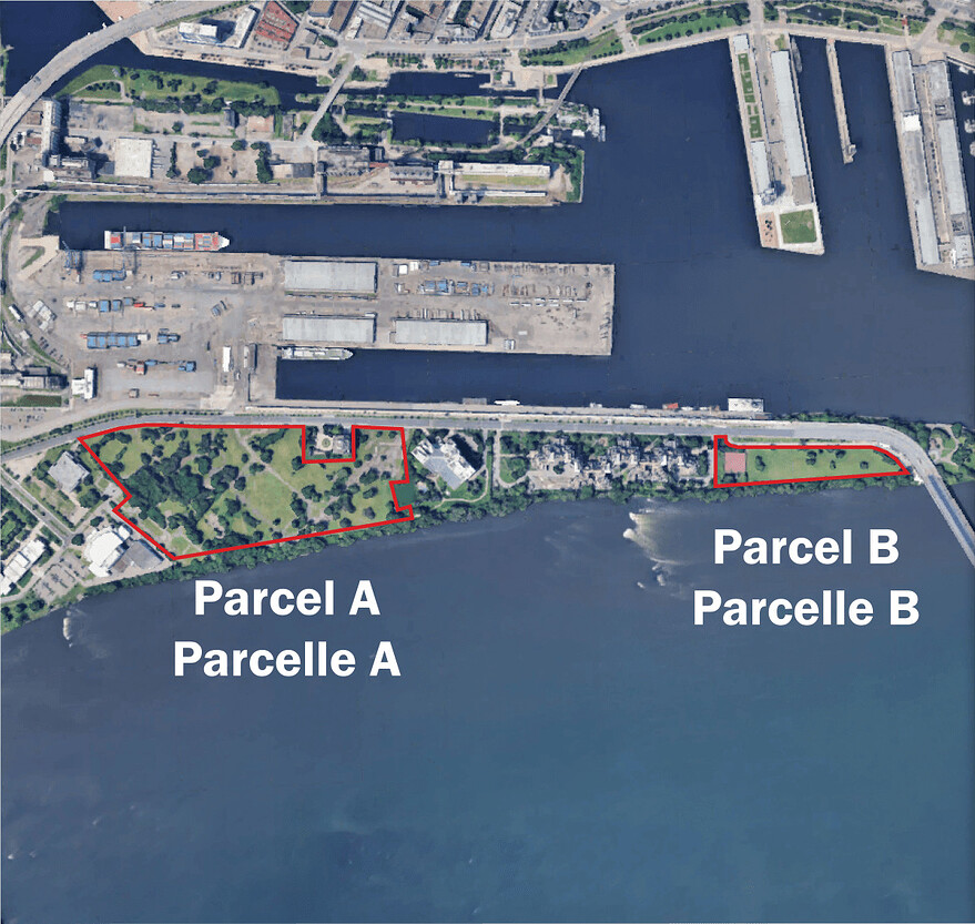 Les deux parcelles sont situées dans l’arrondissement Ville-Marie de Montréal. La première est un site résidentiel (parcelle A) d’une surface d’environ 8,91 hectares (22,01 acres) et est zonée pour des logements à haute densité. La deuxième parcelle (parcelle B) a une superficie de 1,6 hectare (3,9 acres) et est zonée en tant qu’espace vert. La Société immobilière du Canada prévoit finaliser l’acquisition de la parcelle B en 2026.