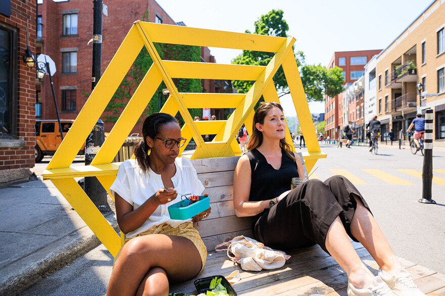 Diane Uwanyirigira et Céline Schmitz prennent leur pause dans l’avenue du Mont-Royal.