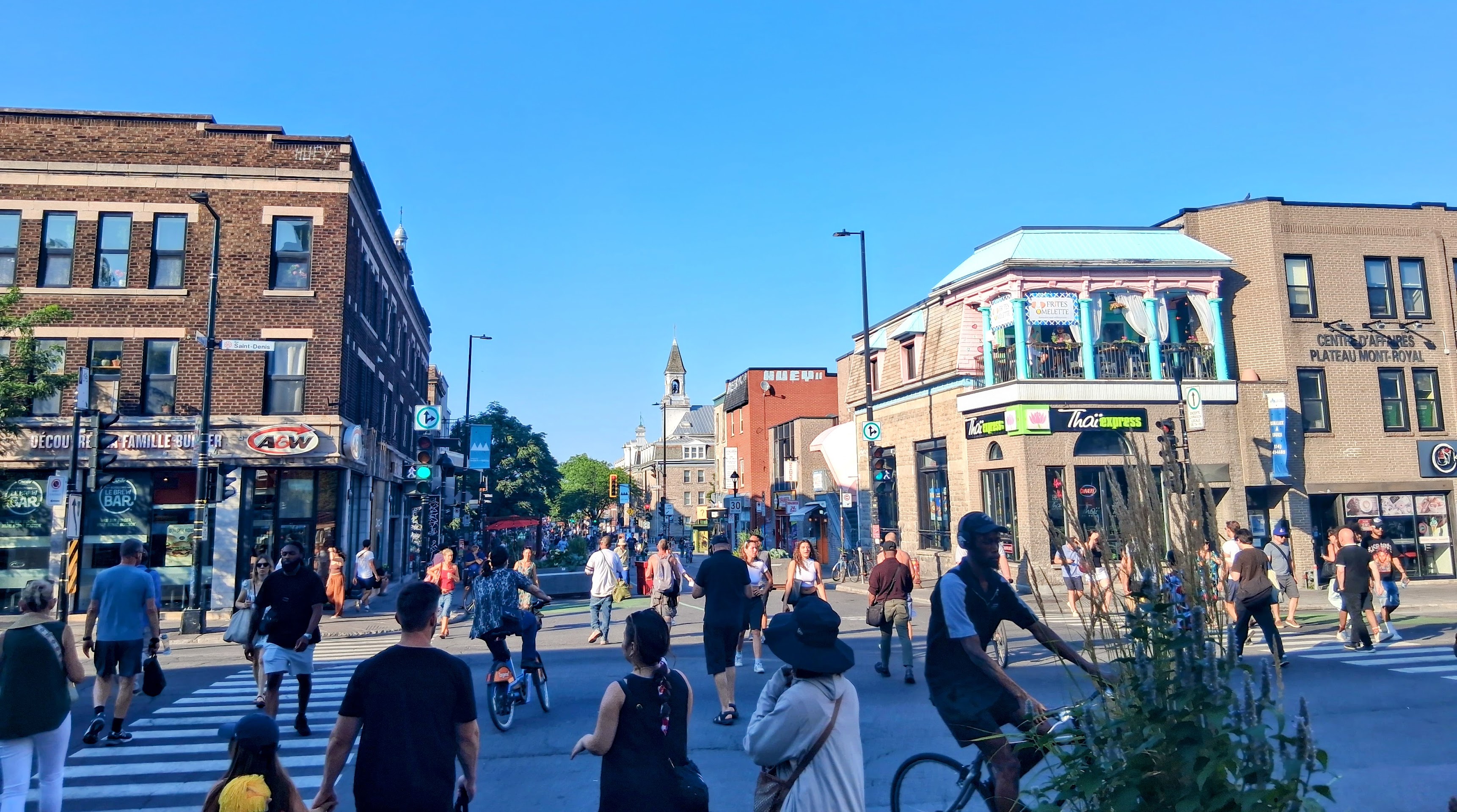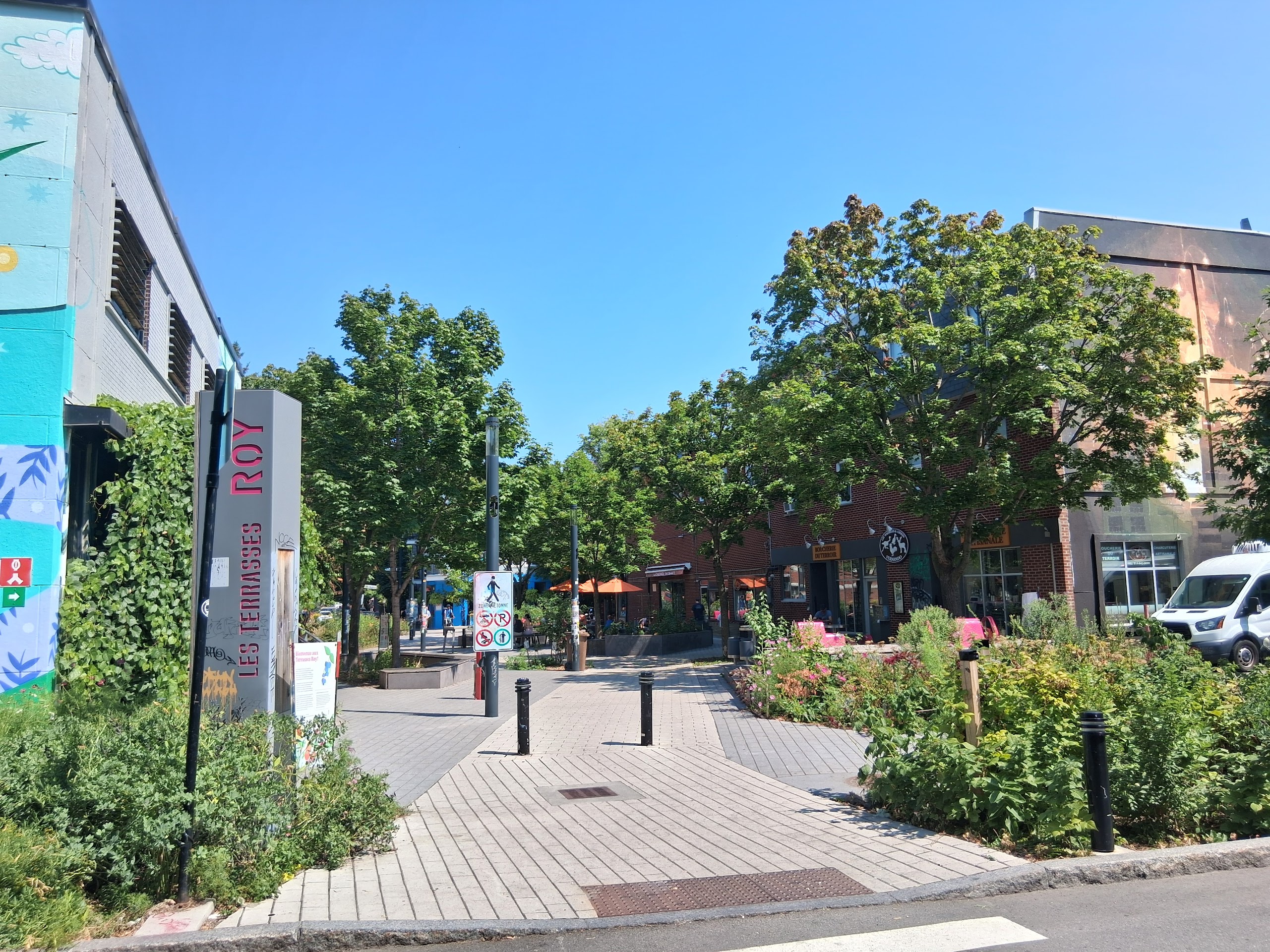 Il y a plusieurs placottoirs (Quais Masson) dans la partie plus commerciale de la rue, à l’ouest de Saint-Michel. Le petit espace est dans la partie est, près de Bourbonniere. Ce n’est pas un secteur habitué à ce genre d’aménagement estival.