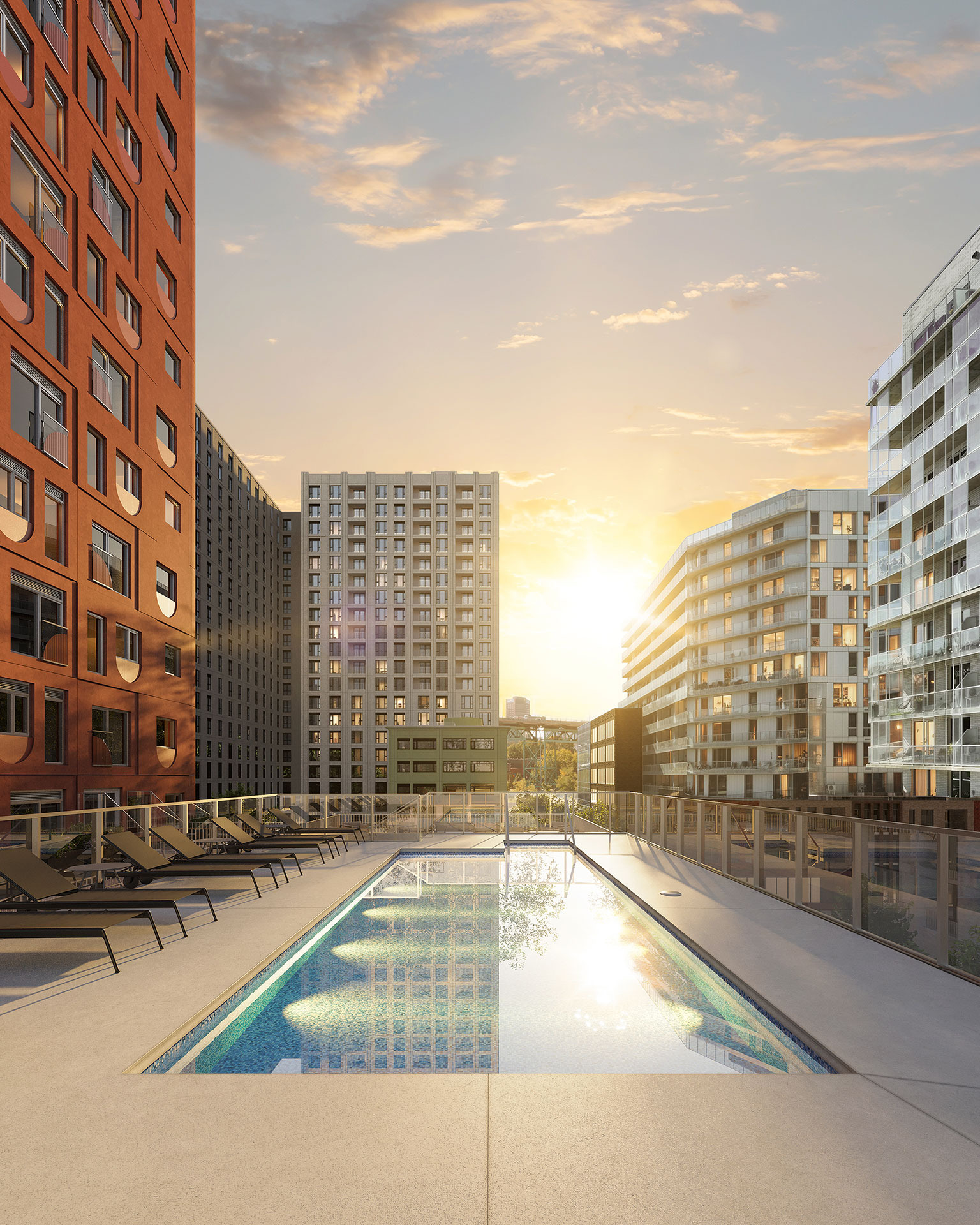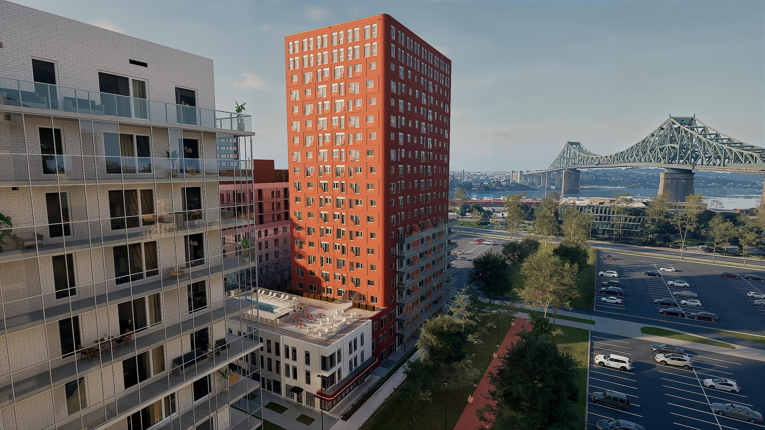 Vaste développement mixte situé au pied du pont Jacques-Cartier. Divisé en 6 lots, le projet totalisera près de 2000 unités et comprendra l’aménagement de deux parcs et d’une place piétonne. Le nouveau YWCA occupera également une partie de la 3e phase développement.