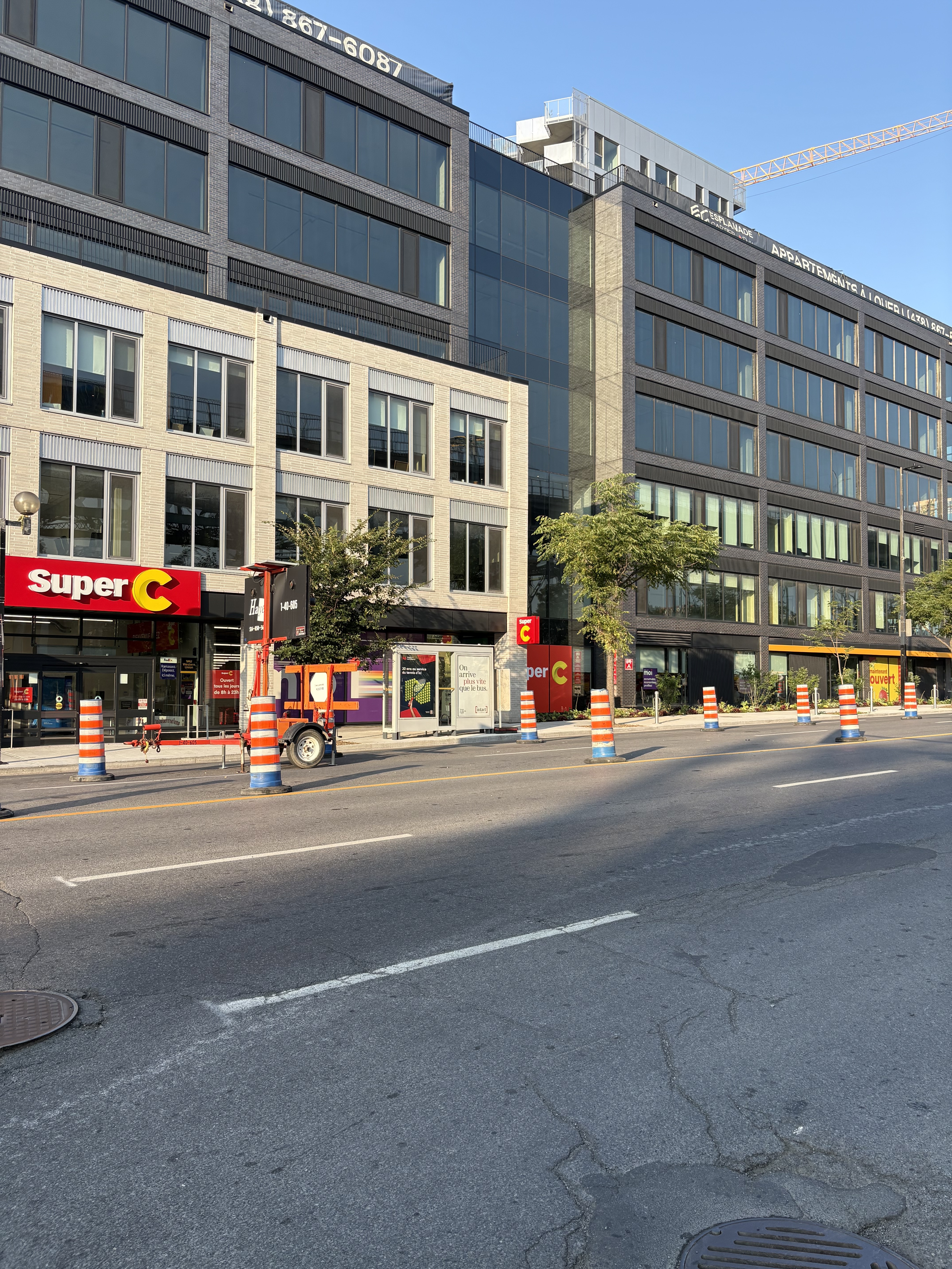 L’ilôt 2 avec le Super C qui offre un espace de cueillette distinct. Malheureusement, le bitume de l’intersection De Lorimier/Sainte-Catherine est dans un état lamentable. A-t-on idée de la clientèle qui transite à cette intersection et qui fait les frais d’un sol inadapté à la mobilité limitée? L’ouverture d’un supermarché de masse n’est pas pris en compte dans les réfections transitoires d’intersections critiques?