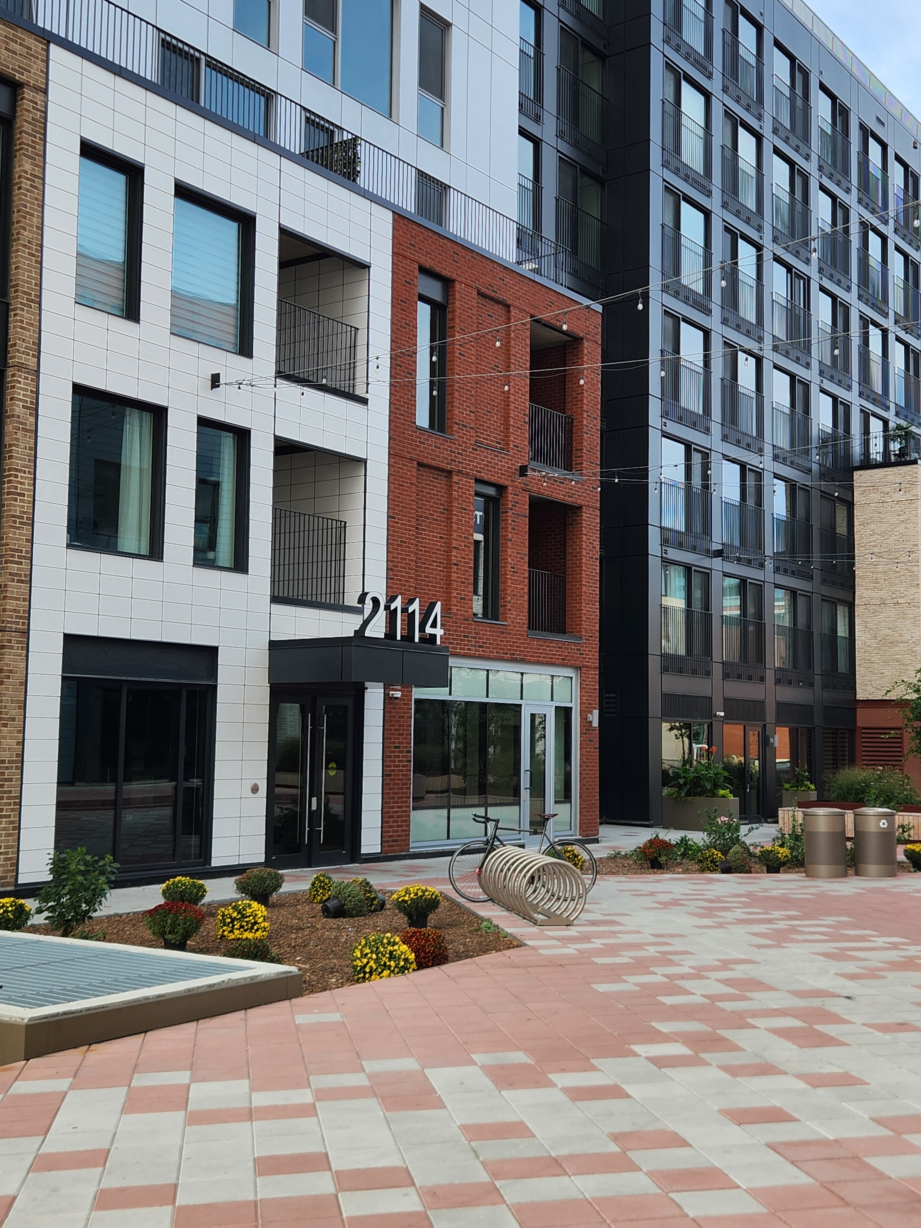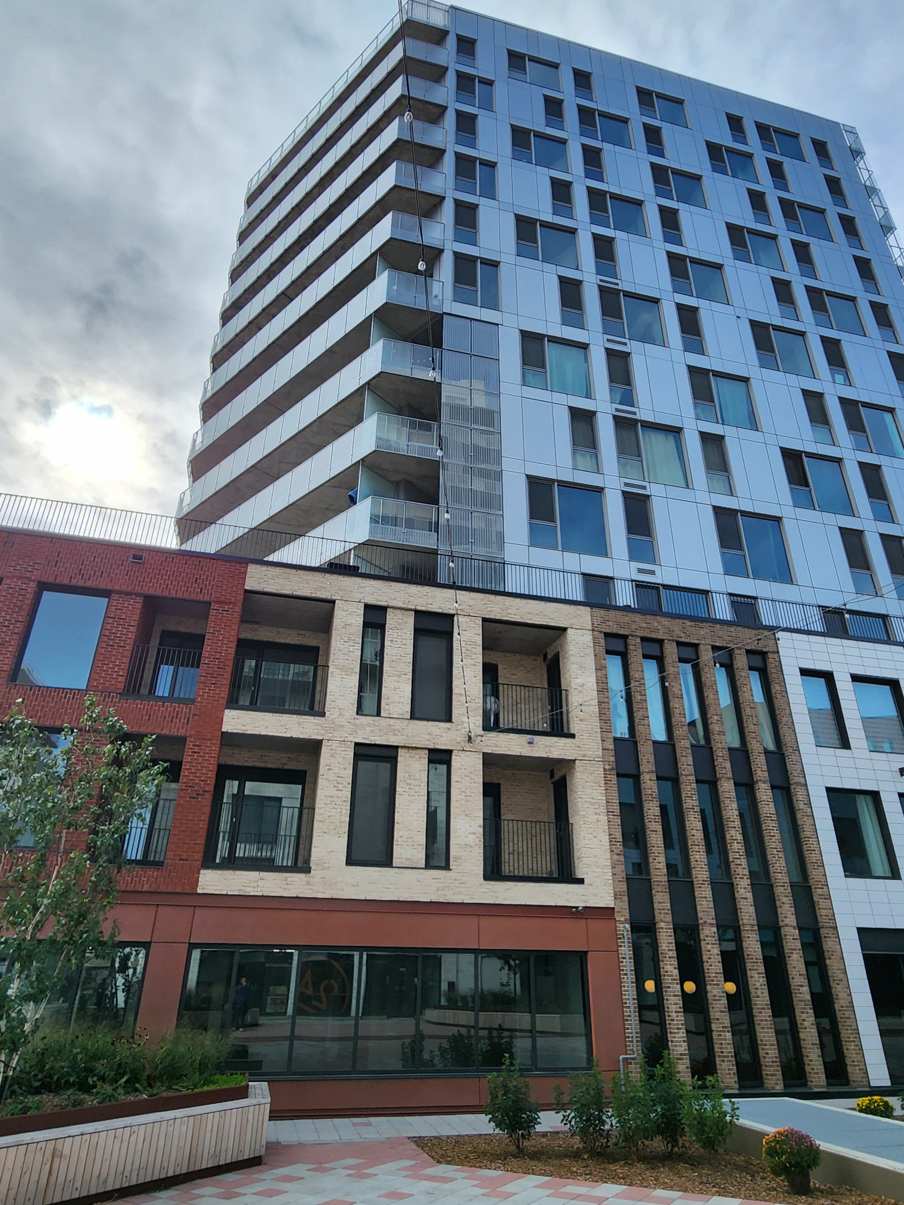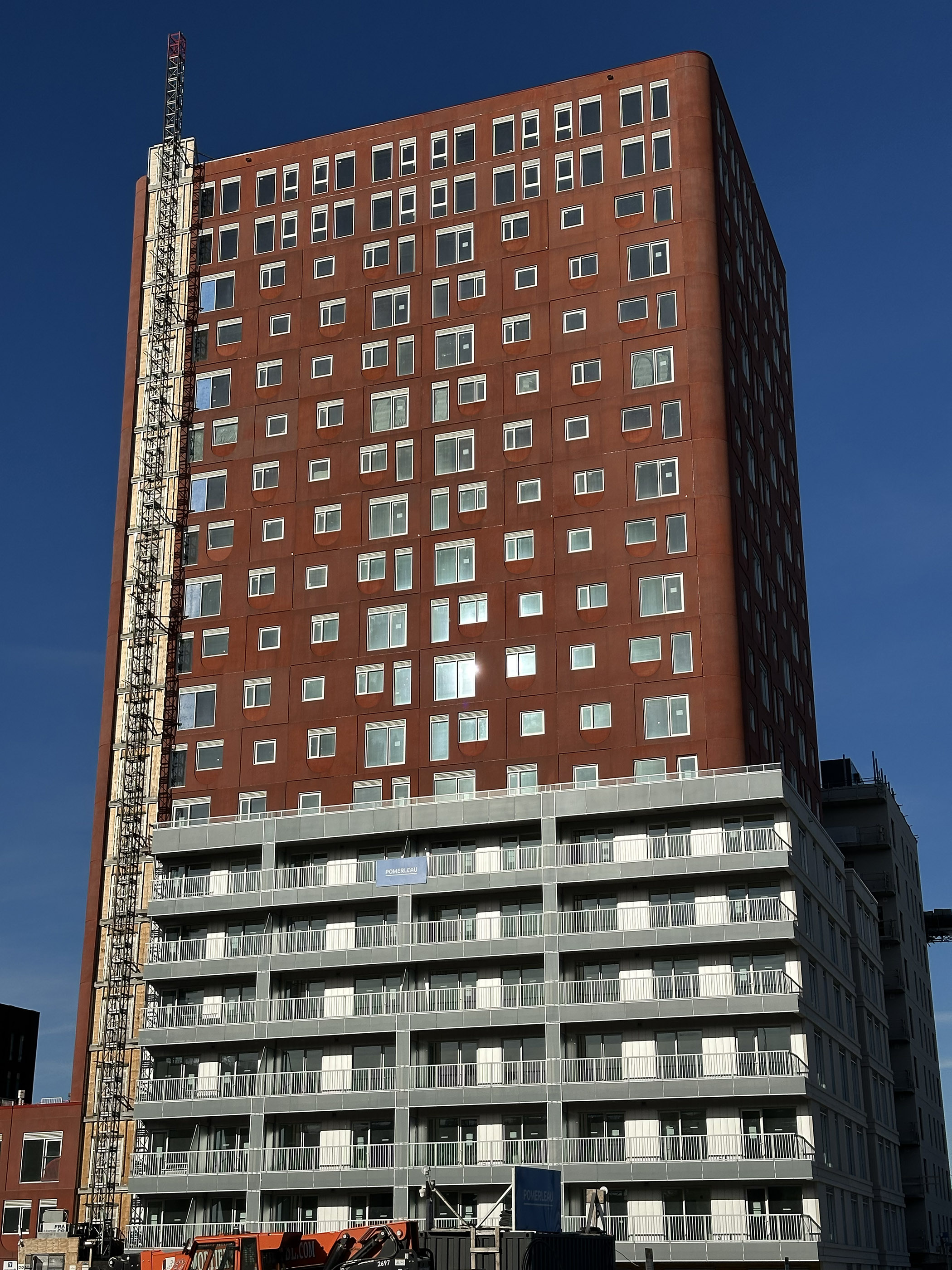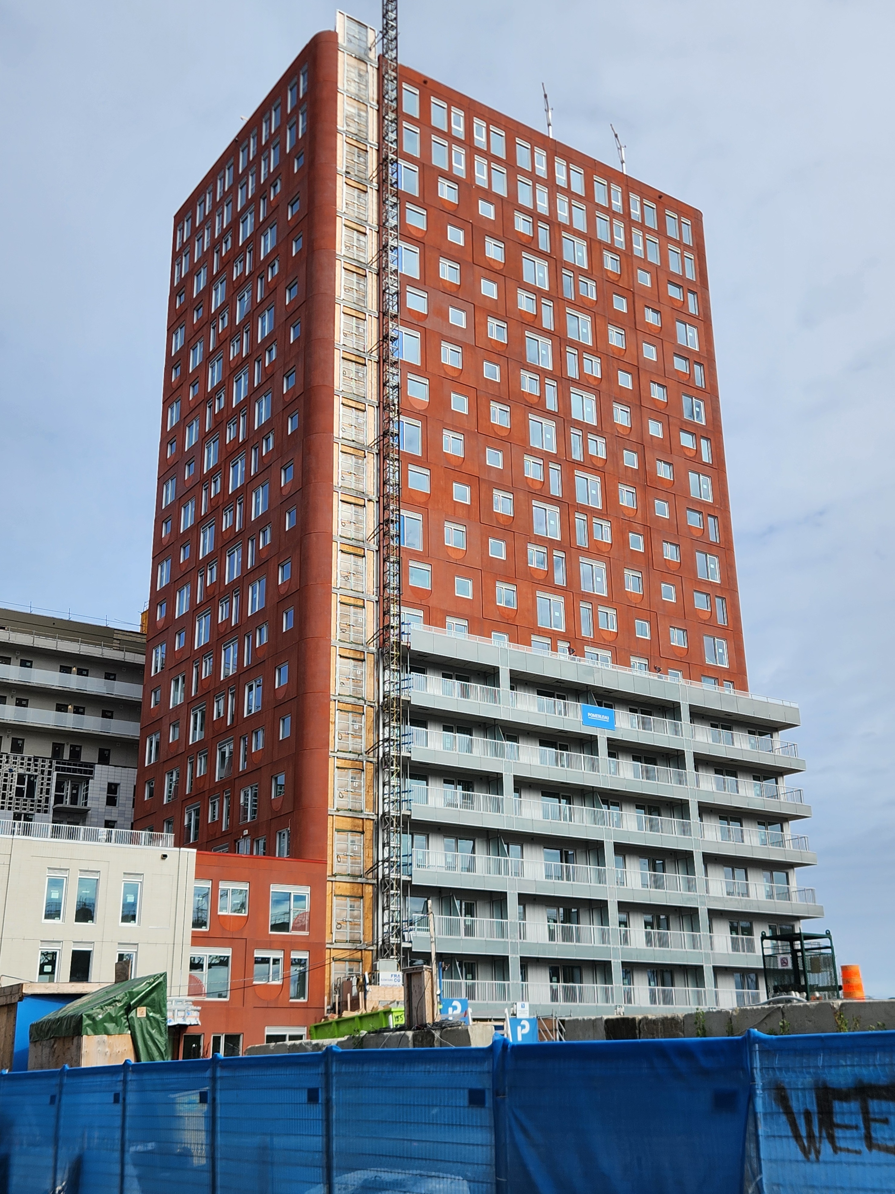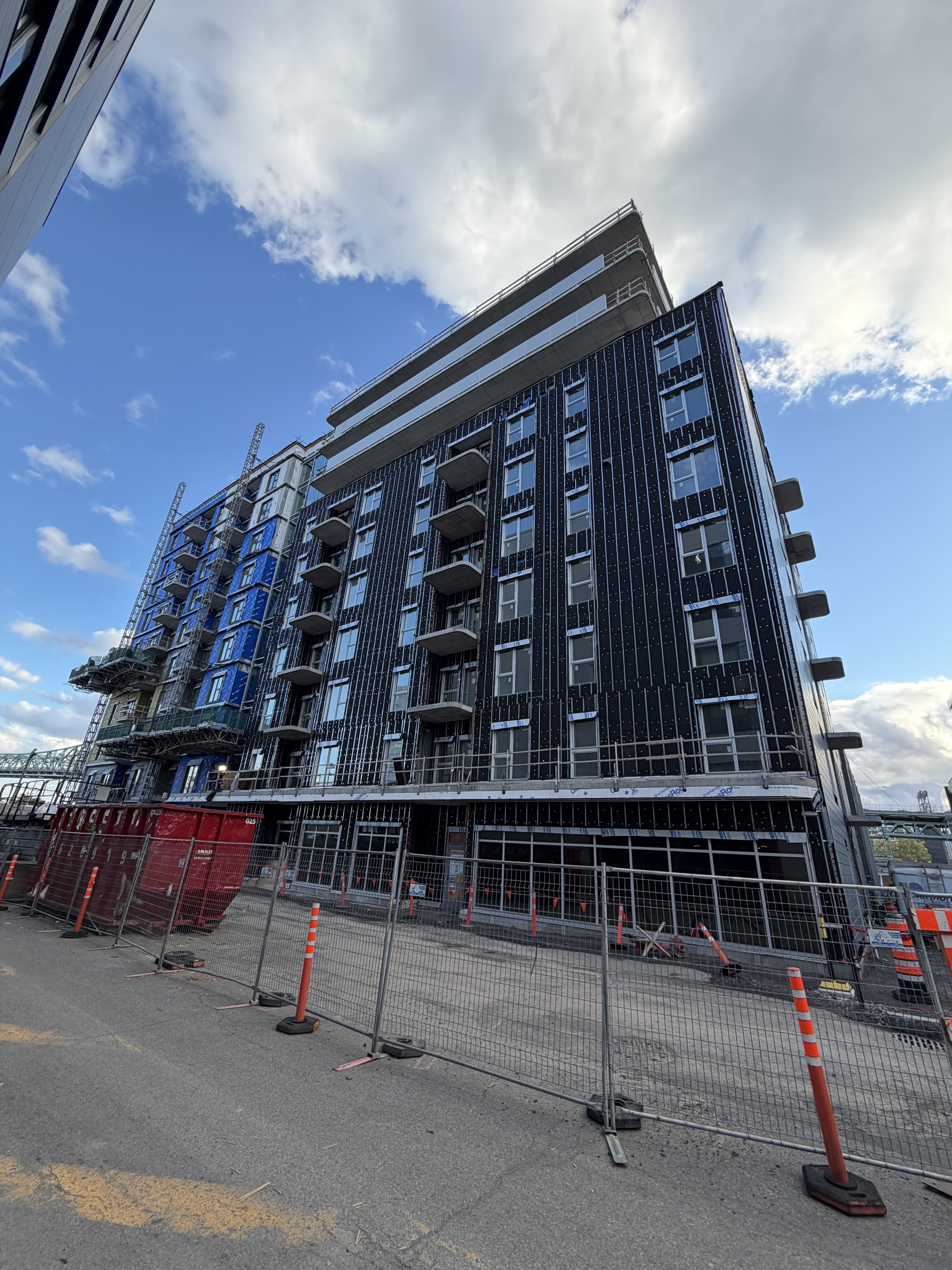 La tour de logements communautaires avance bien sur la rue Parthenais. Les oeuvres d’art peintes sont super jolies. Le terrassement est complété du côté de l’ilôt 2, rue Tansley. Une belle harmonie de couleurs et de formes dans ce projet.