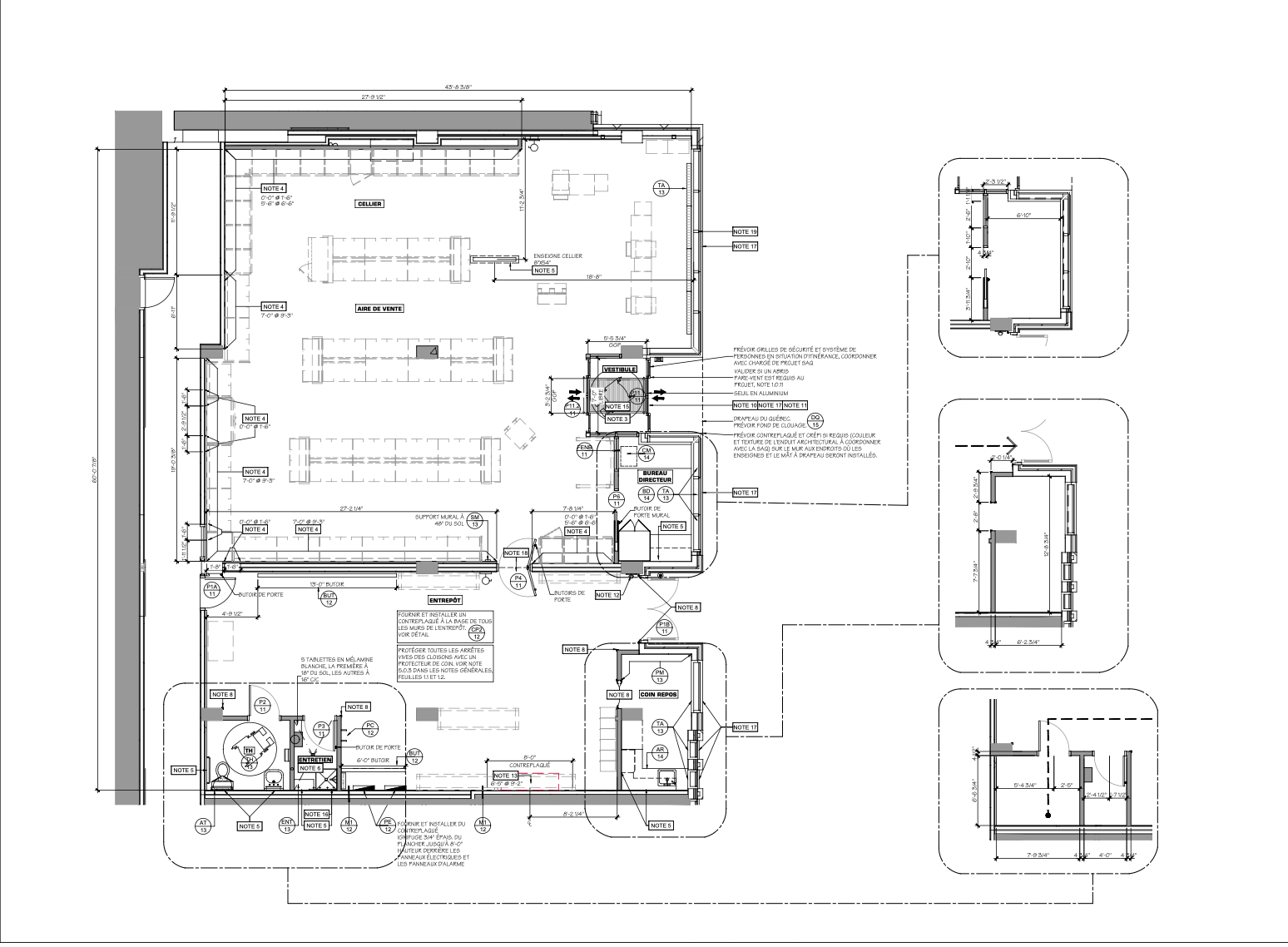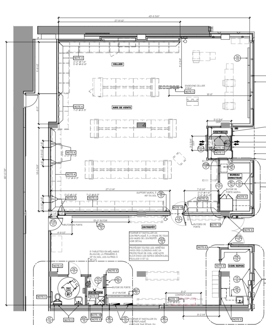 Plan d’aménagement de la SAQ dans les locaux de l’îlot 2. On voit que le local à côté de celui du Tim sera utilisé comme entrepôt et salle des employés.