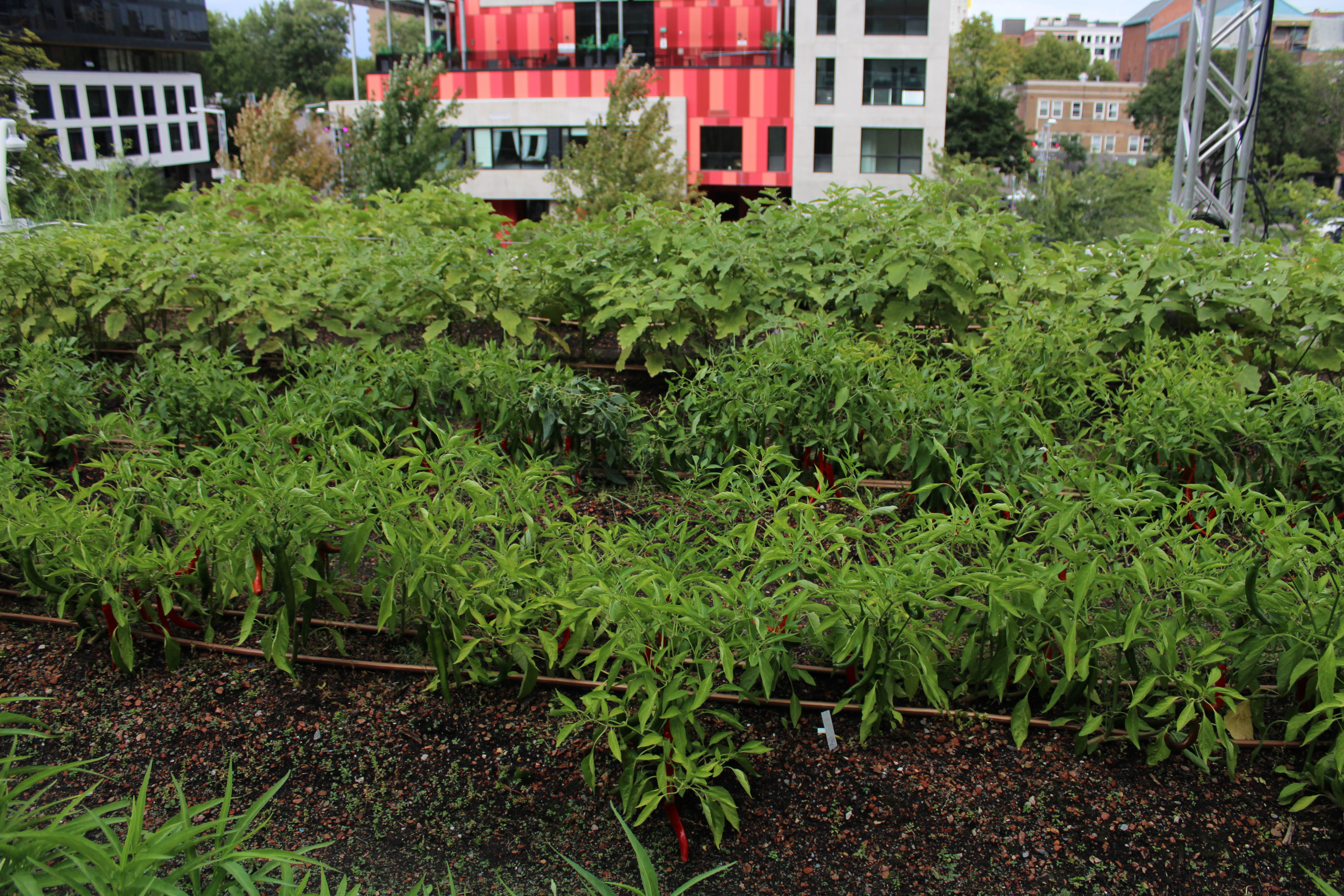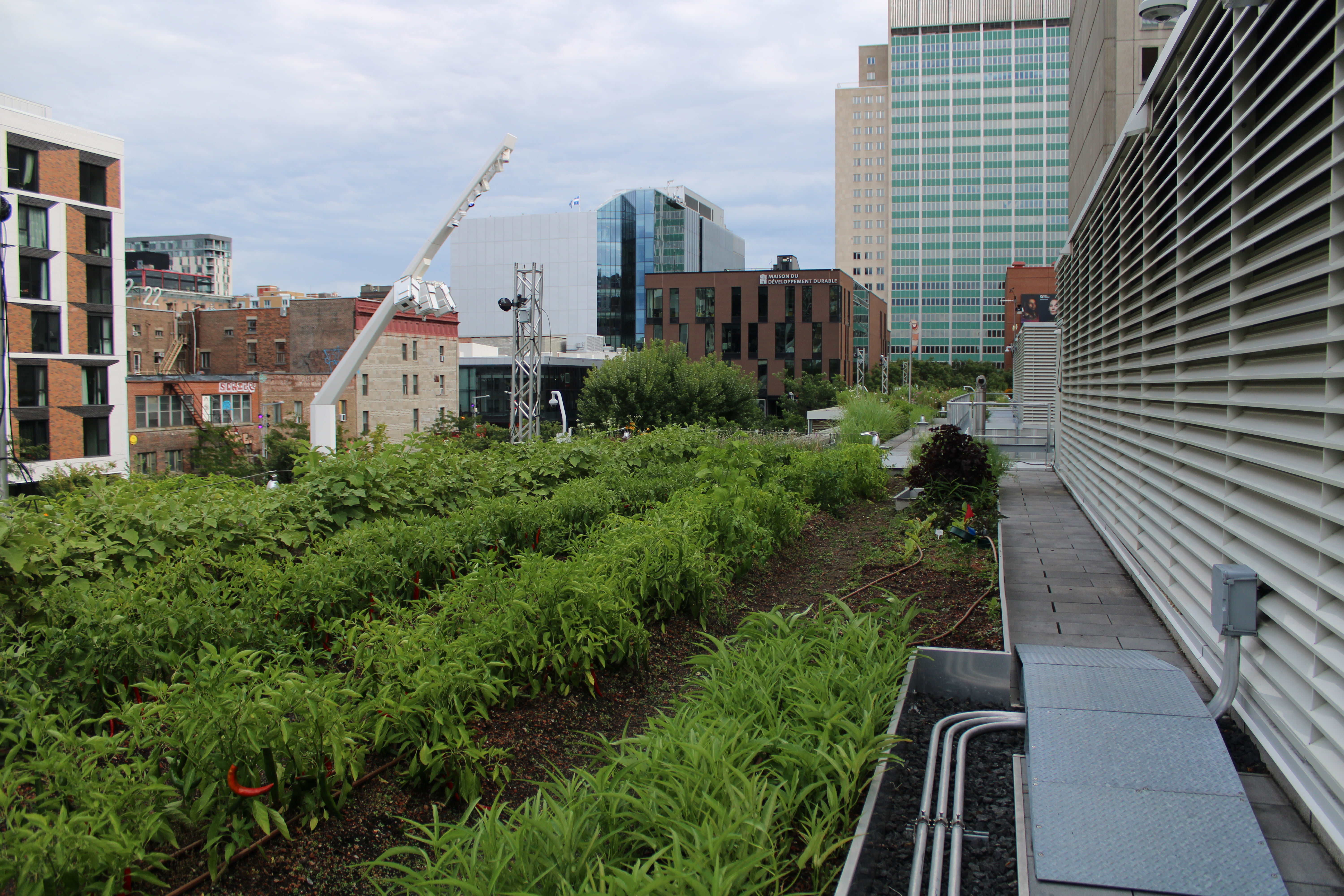 Visite du ‘toit vert incubatoire’ à l’esplanade tranquille, dans le cadre des portes ouvertes de l’UPA. 5 groupes ou personnes ont des parcelles allouées pour un maximum de 3 ans suite à un appel de projet. Le but est d’aider les gens à démarrer une entreprise maraichère/de culture.