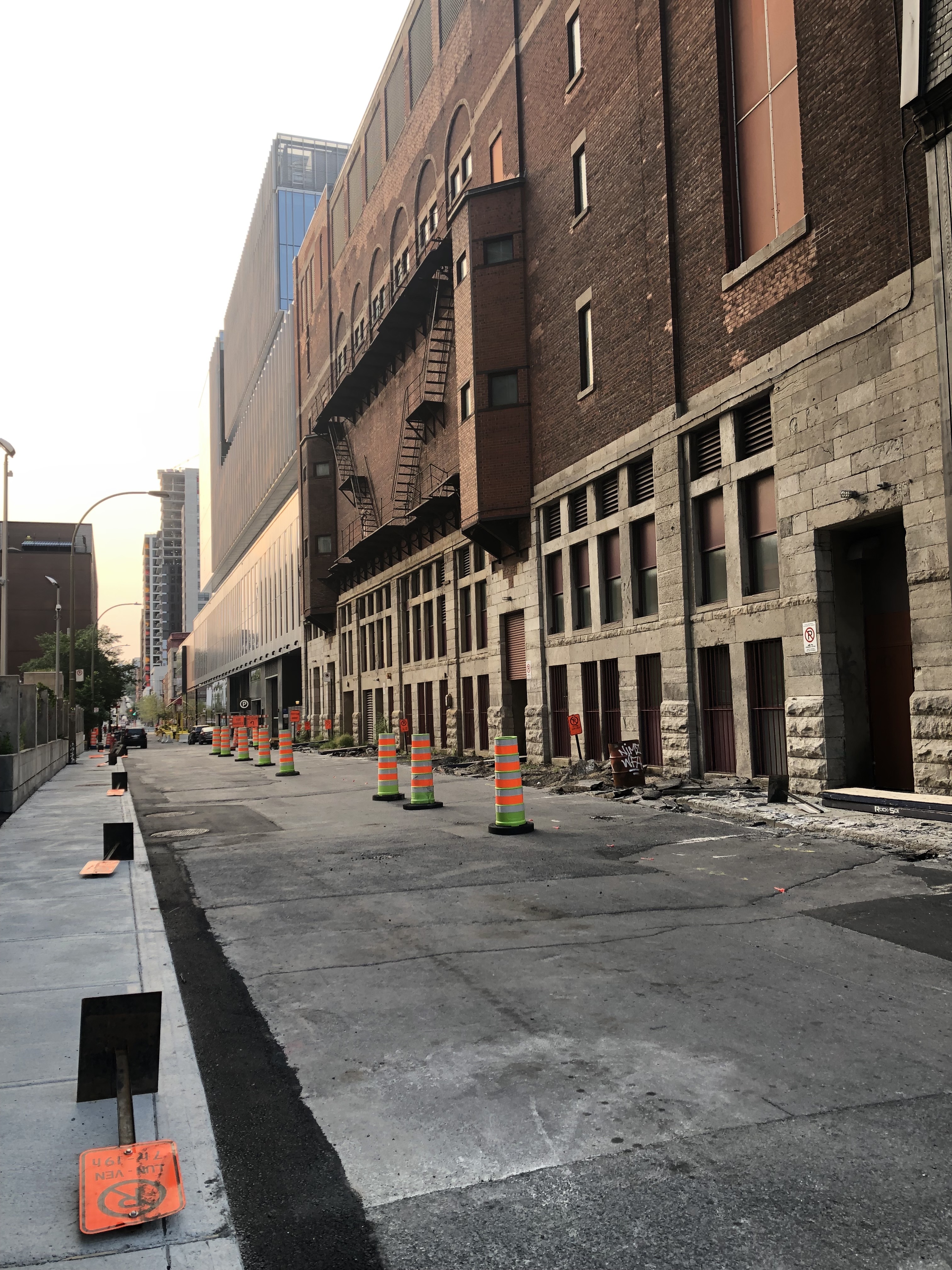 Tout comme la rue St-Denis ou la rue Crescent, les bonnes terrasses seront du côté est de la rue. Attendons alors de voir ce qu’il y aura de l’autre côté, celui dont les travaux débutent.
