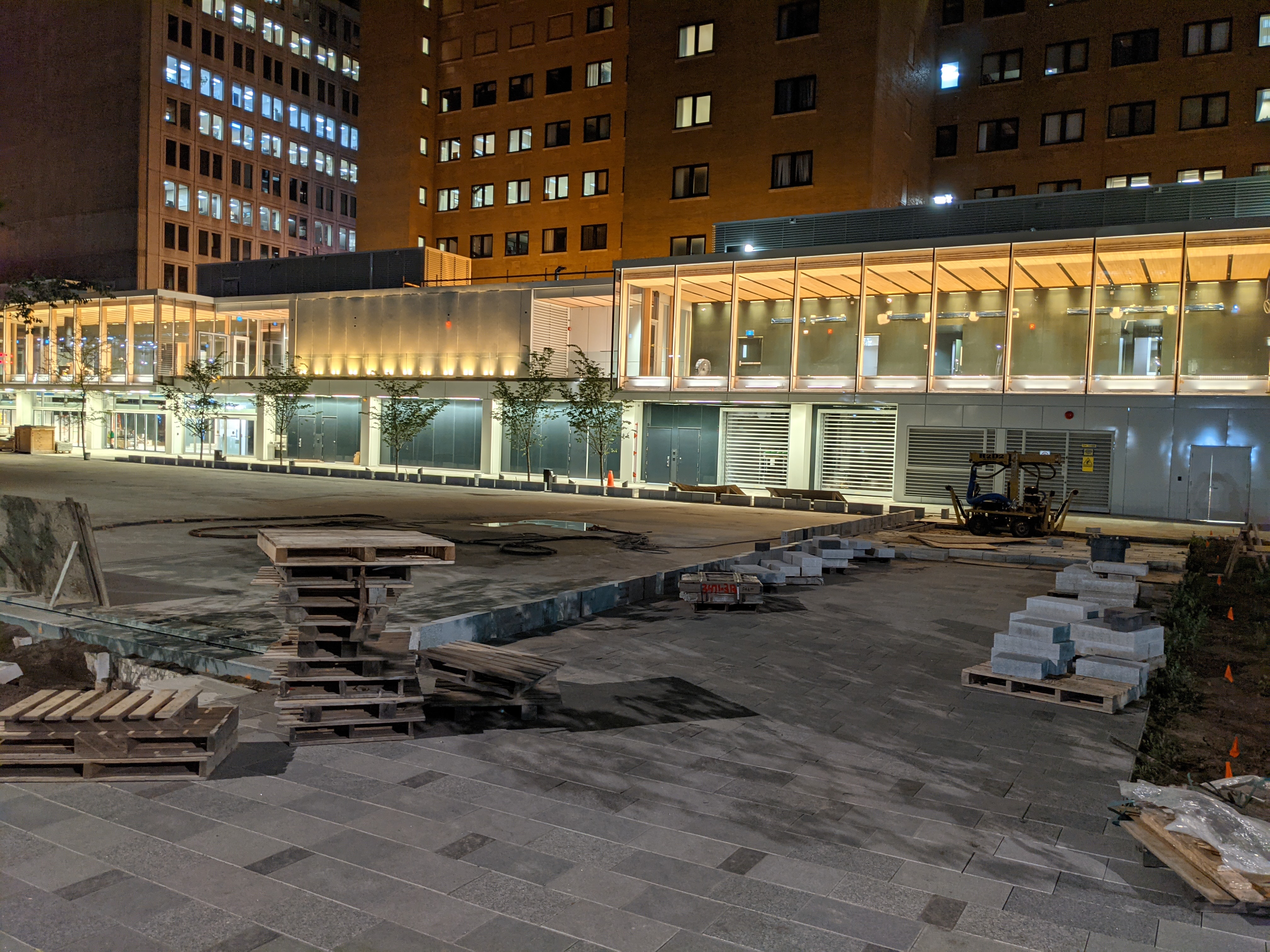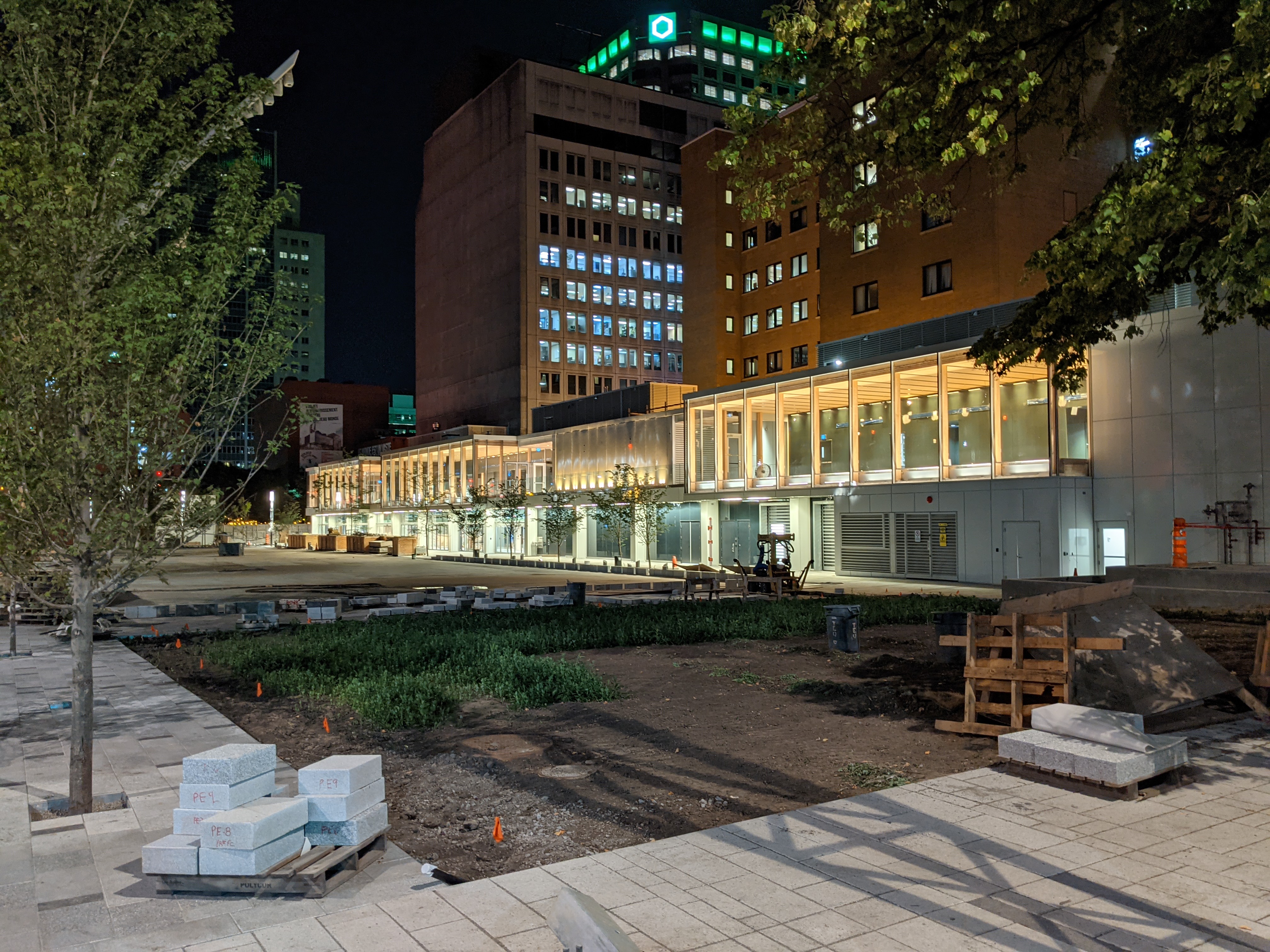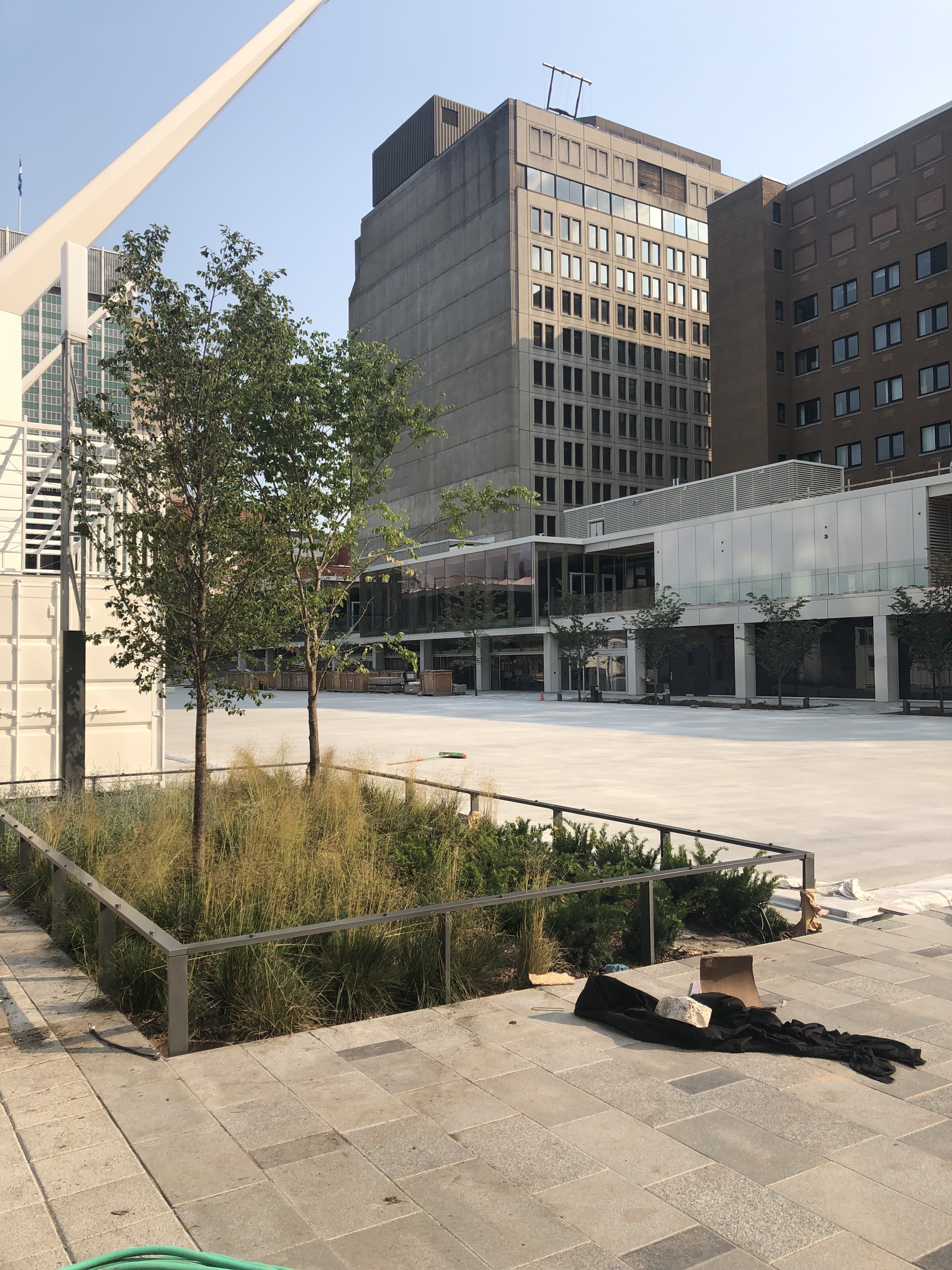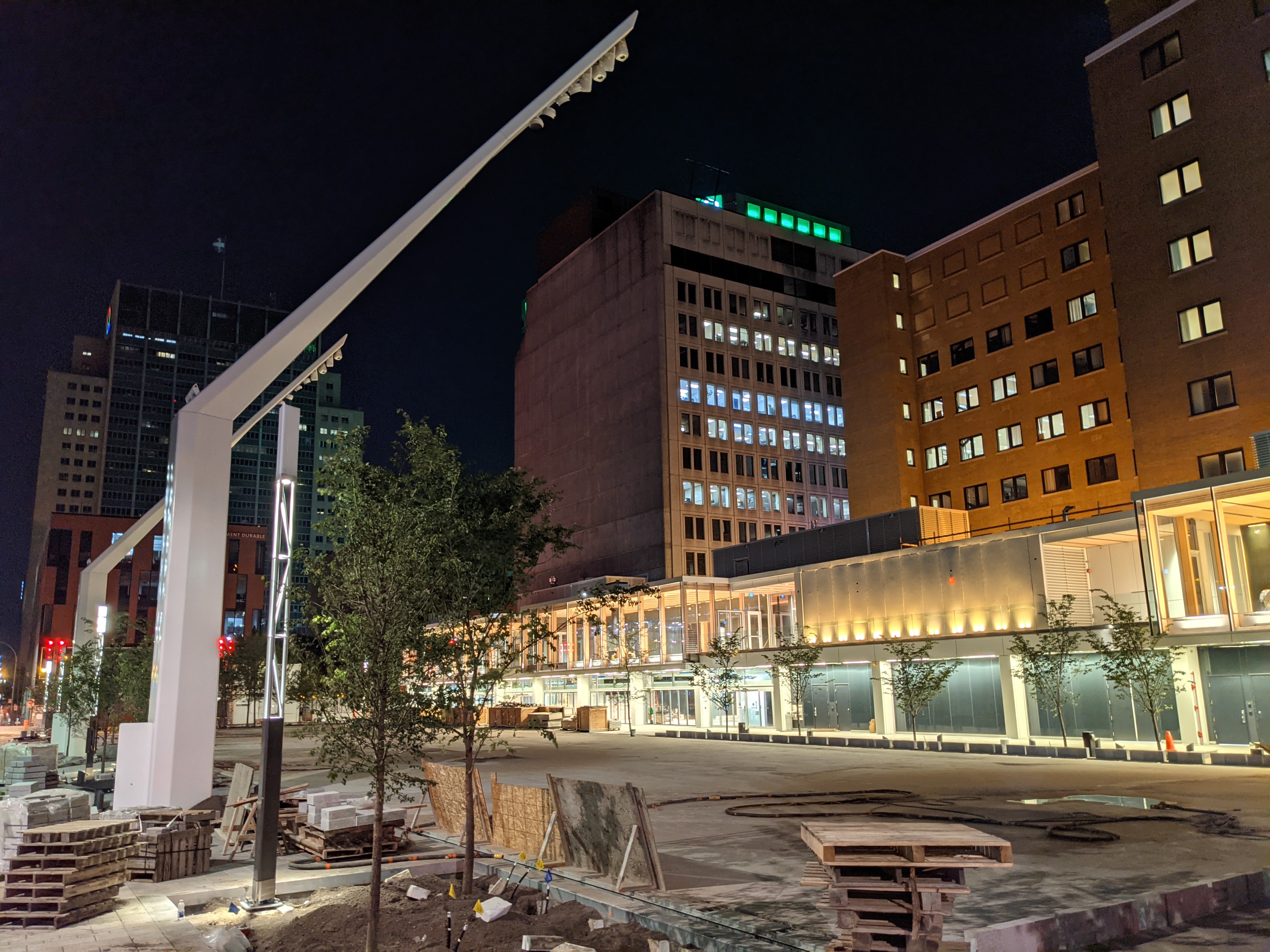 La place sera inaugurée dans quelques semaines, en été. Par contre (et c’est ce qu’on savait déjà), c’est la patinoire qui sera inaugurée au début de l’hiver (plutôt automne, mais dans l’esprit collectif, novembre est pas mal le début de l’hiver). Car on comprendra qu’il est difficile d’inaugurer une patinoire à la fin de l’été.