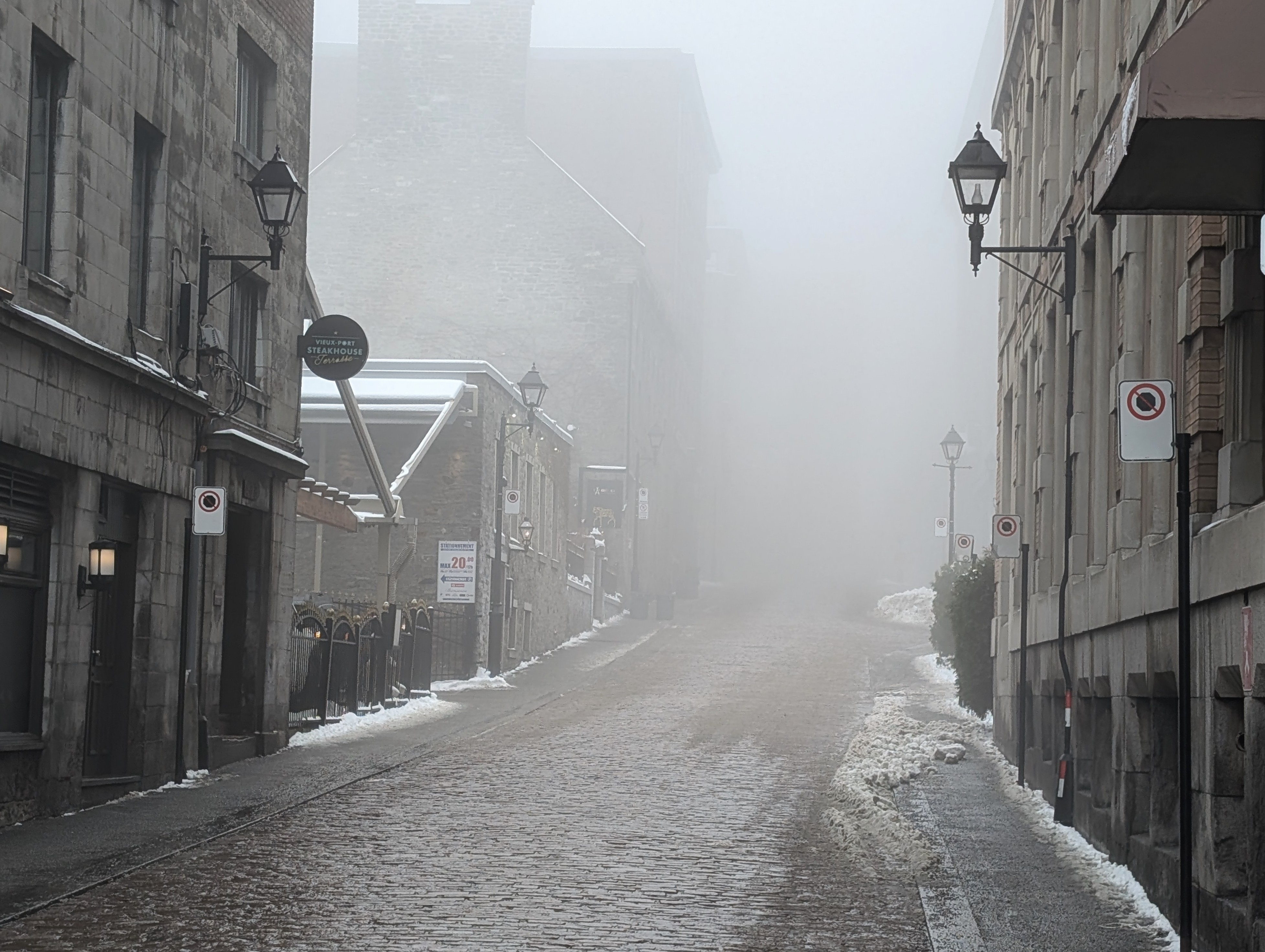 Je viens de rentrer de Québec par la 20, je n’ai jamais vu un aussi épais brouillard au Québec, visibilité à 100 mètres max par moments/endroits (j’ai déjà vu pire au Liban dans les montagnes, mais ça c’est une toute autre histoire…)