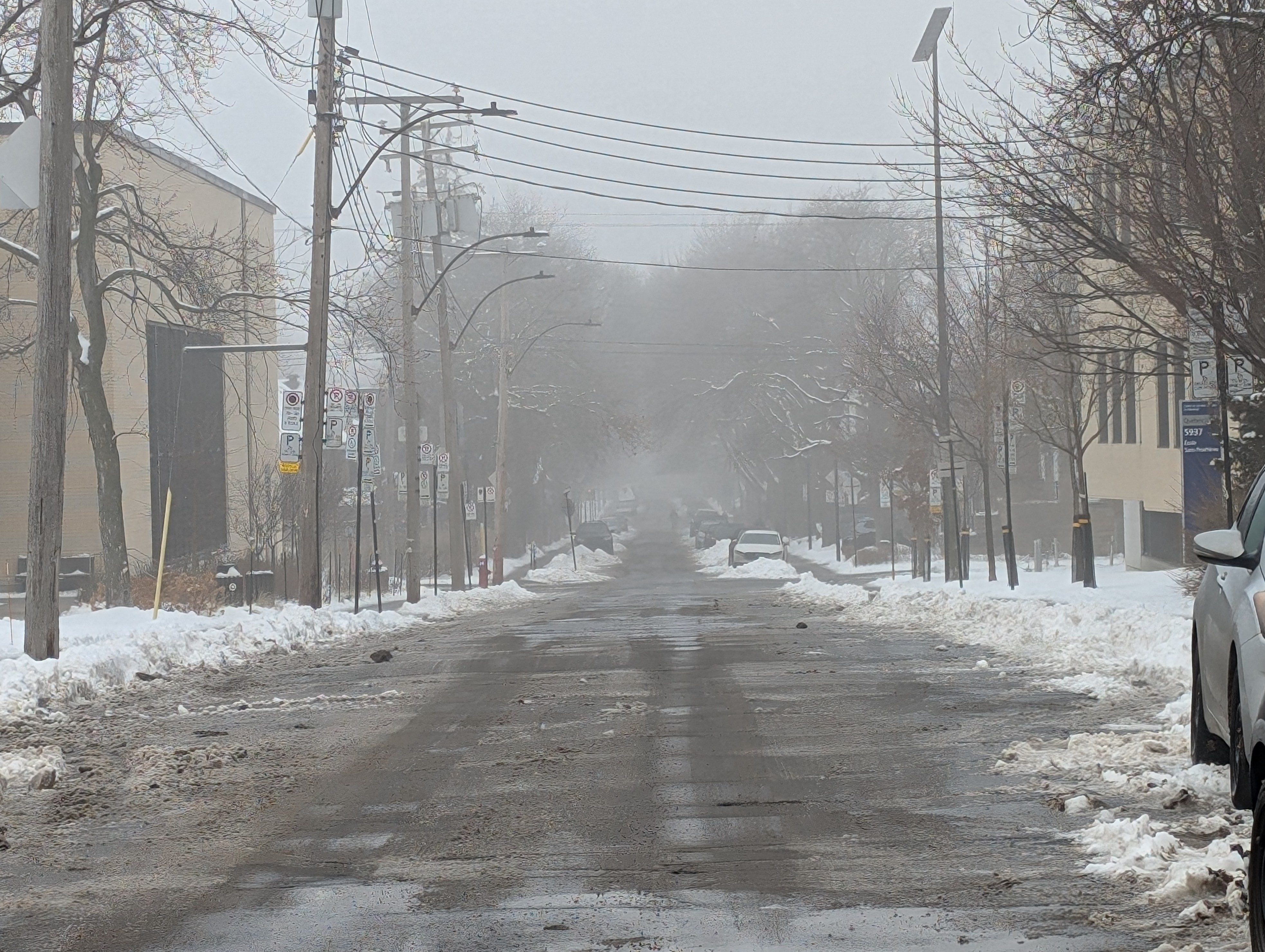 Je vois à peine l’autre bord de la rue.
