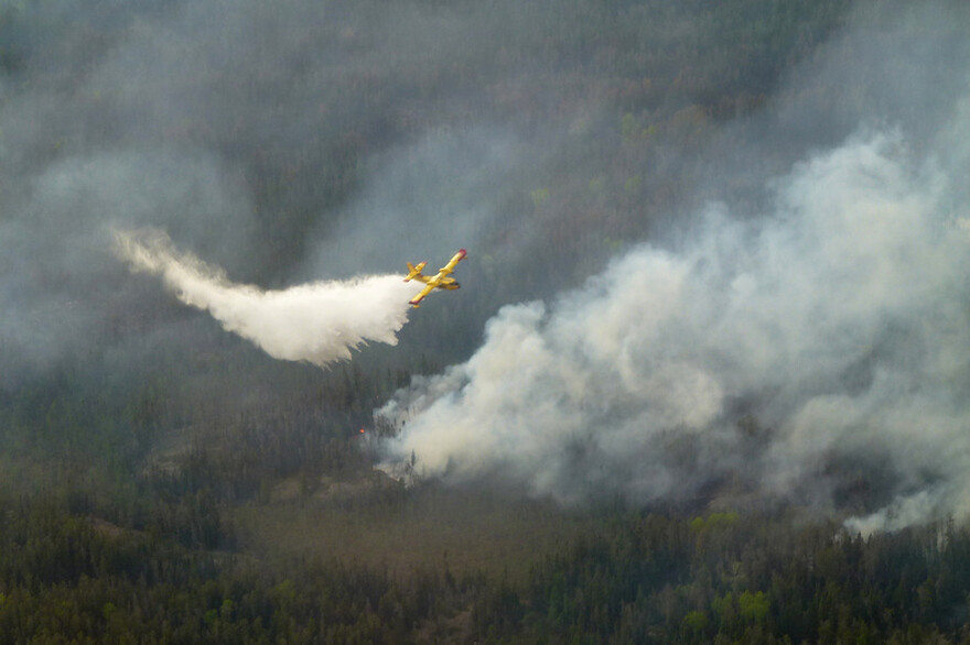 Un avion lutte contre un incendie de forêt dans le sud-est du Manitoba.