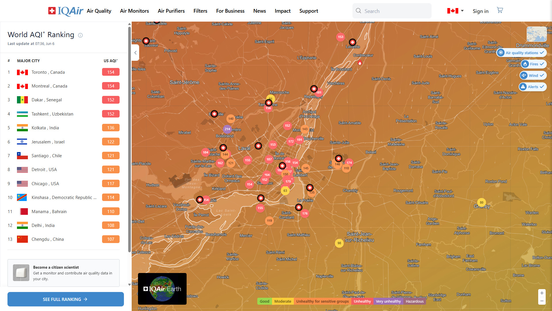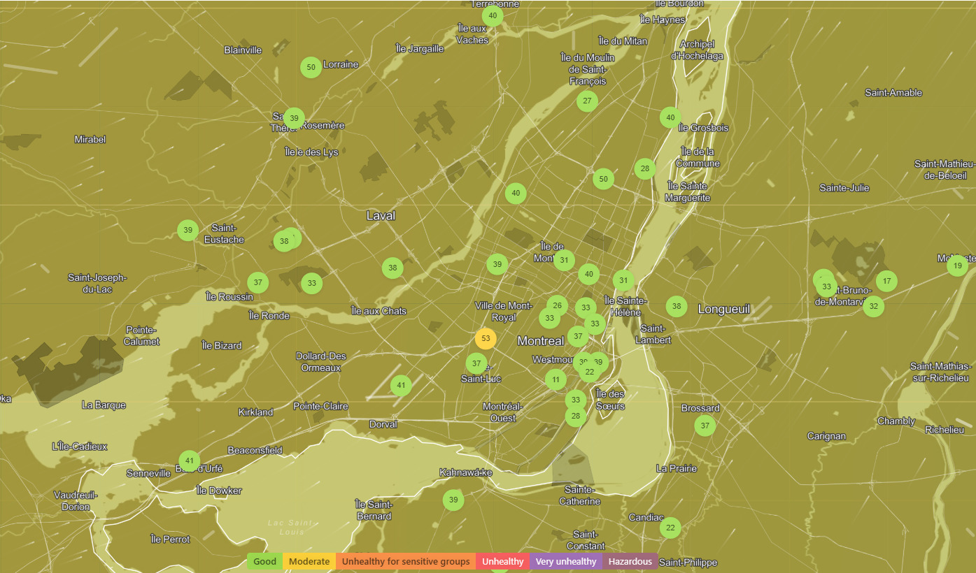 Ce matin, Montréal et Toronto dans le top 2 des villes avec la plus mauvaise qualité de l’air