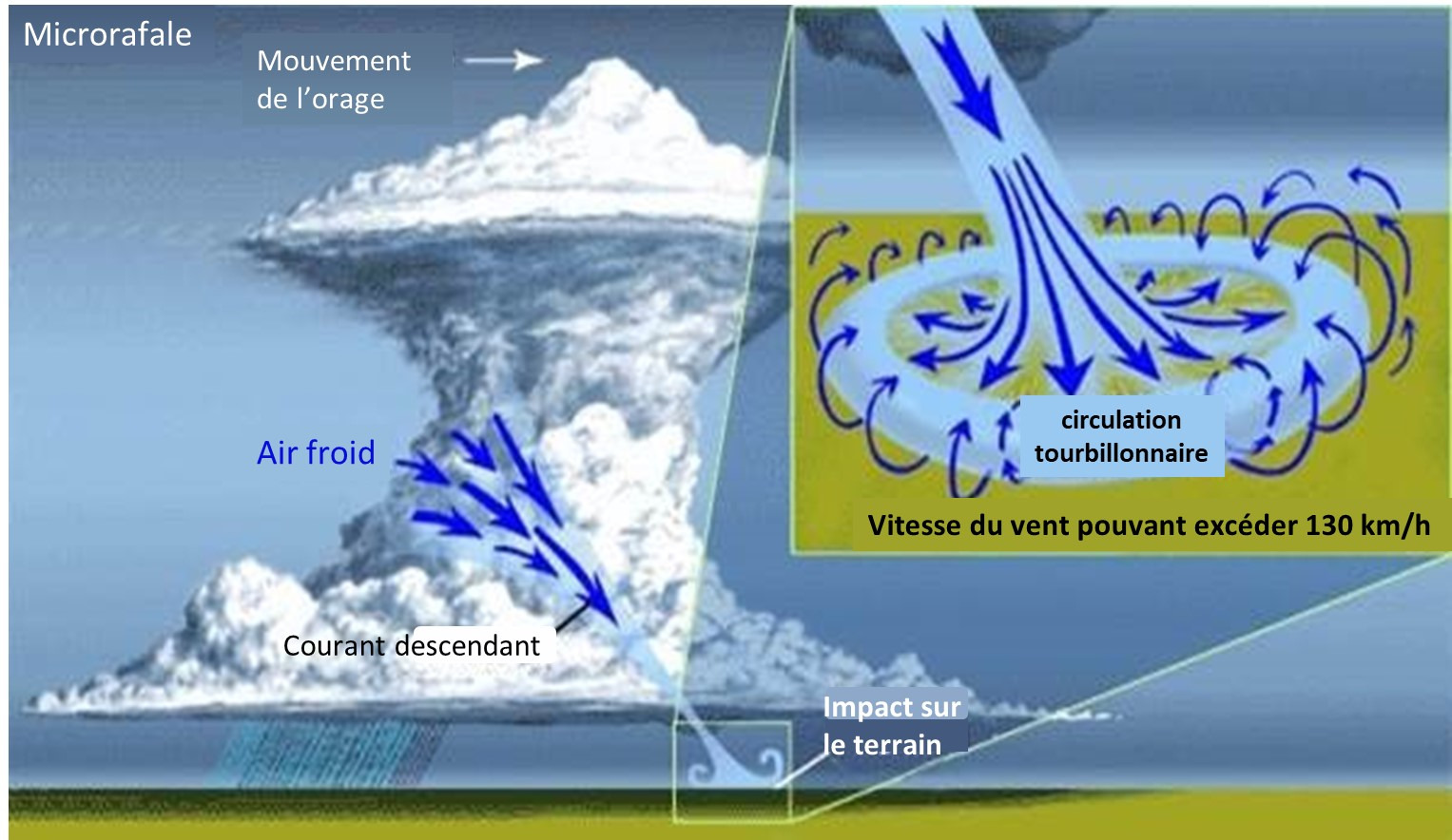 Microburst = microrafale en français, ou rafale descendante