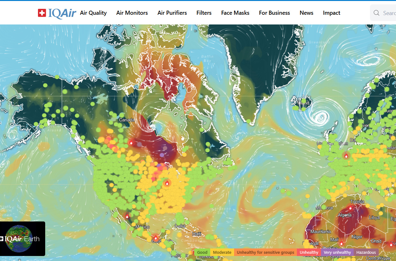 Voir la carte ici : Live Animated Air Quality Map (AQI, PM2.5...) | IQAir