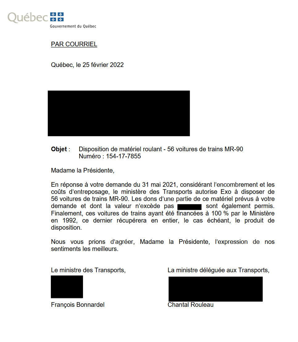 Malheureusement l’argent va toujours au MTQ lors de vente de matériel roulant.