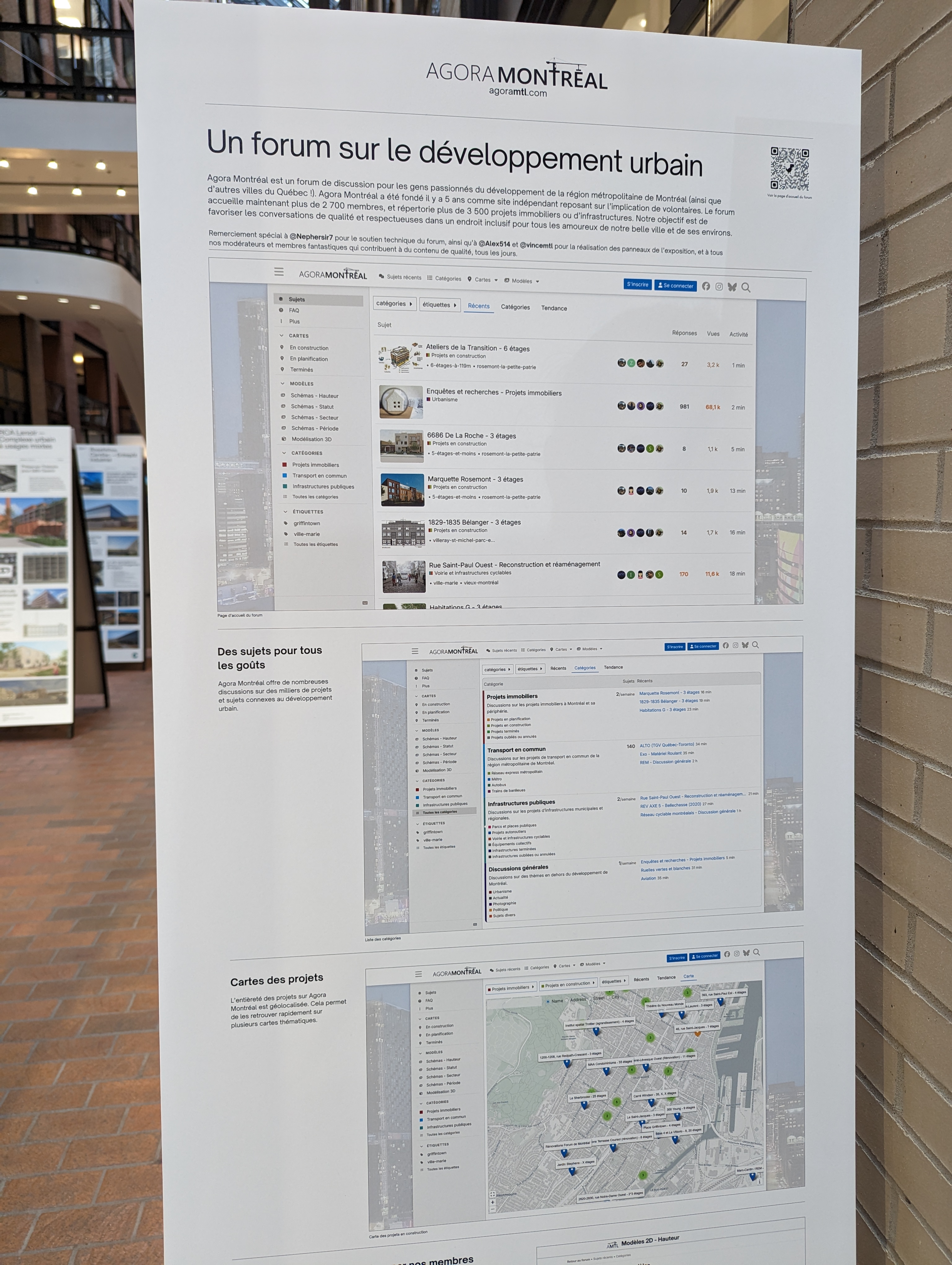 Bravo pour cette belle exposition qui promet, avec énormément d’information, dont une forte proportion sur les détails techniques des projets. Mon seul bémol: je suis surpris que l’exposition soit en forte majorité en support carton sur des chevalets, en 2025. Pour un “Montréal du Futur”, je m’attendais à une exposition plutôt interactive avec une forte proportion de supports vidéos/écrans. C’est peut-être une considération financière, mais c’est assez dichotomique avec le sujet du “futur”, en cette nouvelle ère d’Intelligence artificelle et de fortes avancées technologiques.