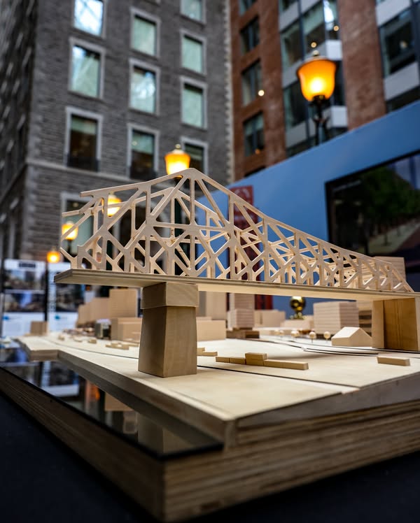 Le public peut découvrir la maquette du promoteur, tout comme celles d’une dizaine d’autres grands projets phares de la métropole, à l’exposition biennale Montréal du Futur, qui se tient du 24 au 29 septembre au Centre de commerce mondial de Montréal.