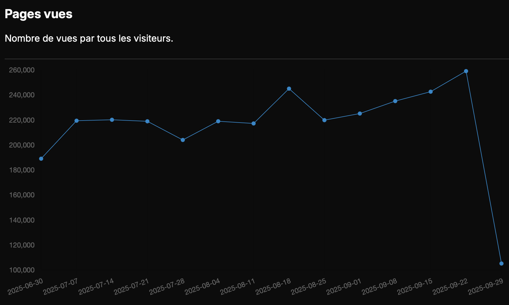 Oubliez les données de la dernière semaine sur ces graphiques, elles sont incomplètes. L’avant dernier point est la semaine de l’exposition.